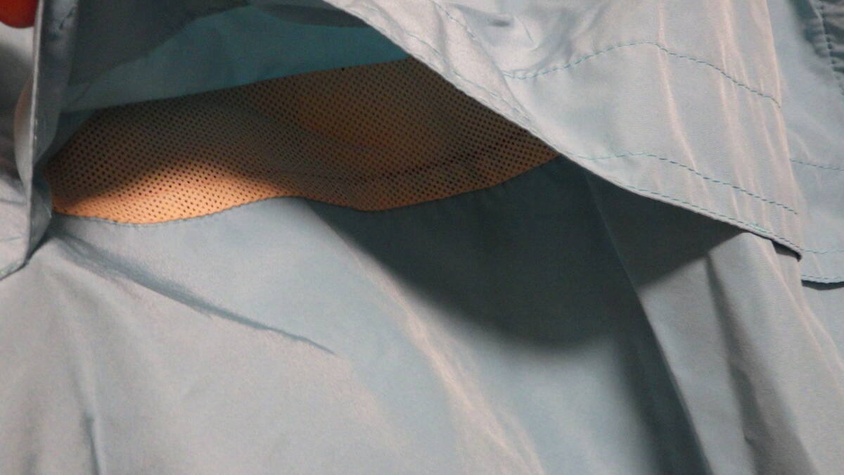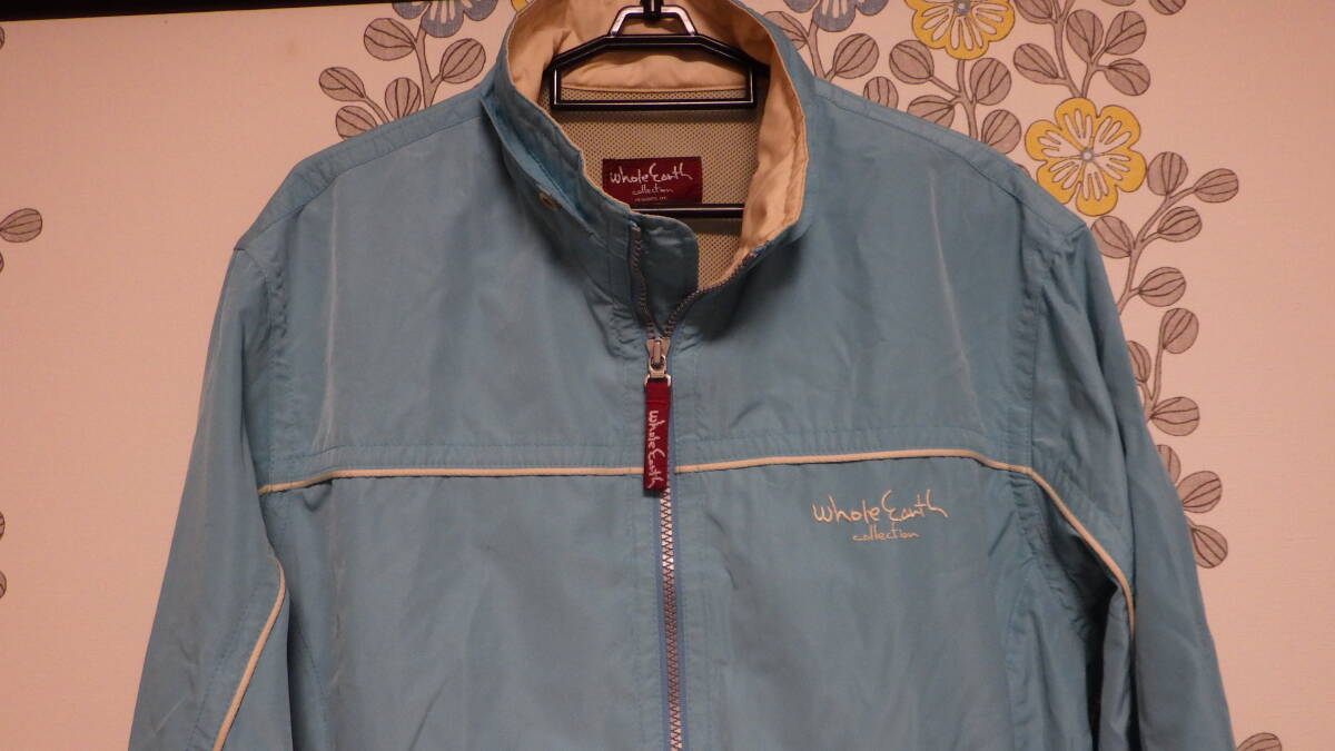 ホールアース ジャケット M ライトブルー クリーニング済 ファスナーポケット 裾コード エアポケット フード無し (株)デサント