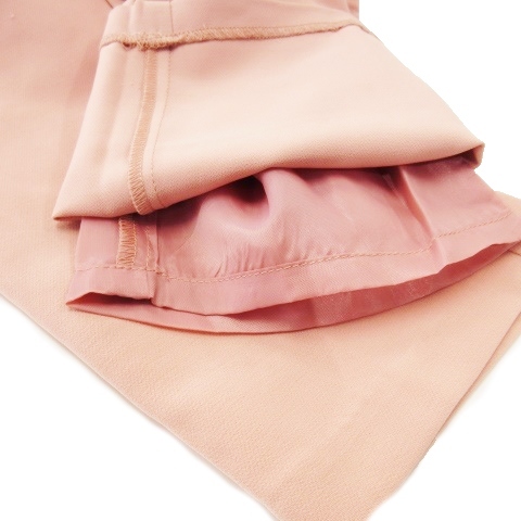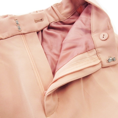 【仕様】素材 薄手 開閉 ジップフライ 伸縮性 表地のみ若干あり 透け感 なし ポケット サイド×2 後ろ×2 裏地 あり 柄 無地 ウエスト バックゴム 優しいピンク色が柔らかな雰囲気のアイテムになっています シンプルなデザインなので着回しに重宝する1着です