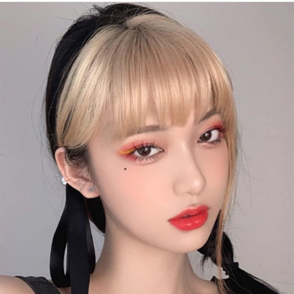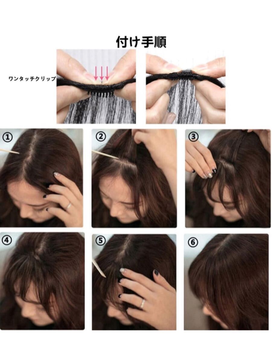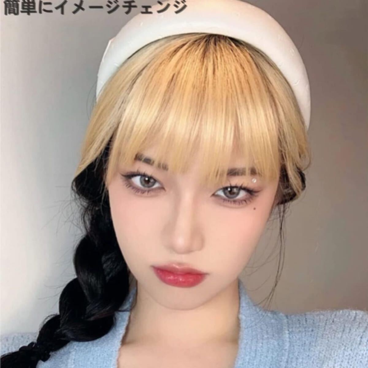 根元がふわふわしていて、超自然な前髪ウィッグ!長さは目と眉毛の間で、小顔効果がある。