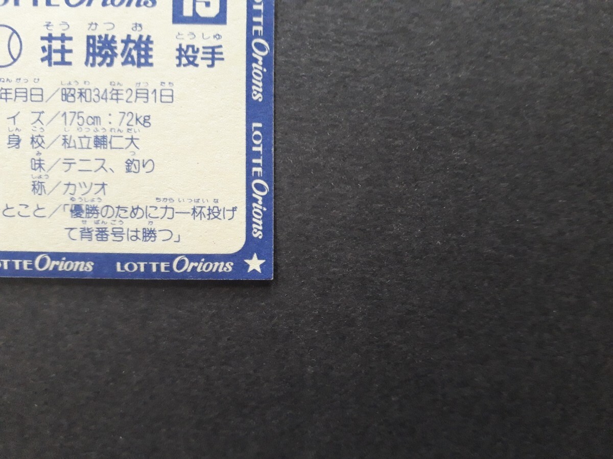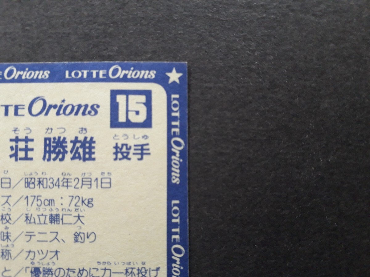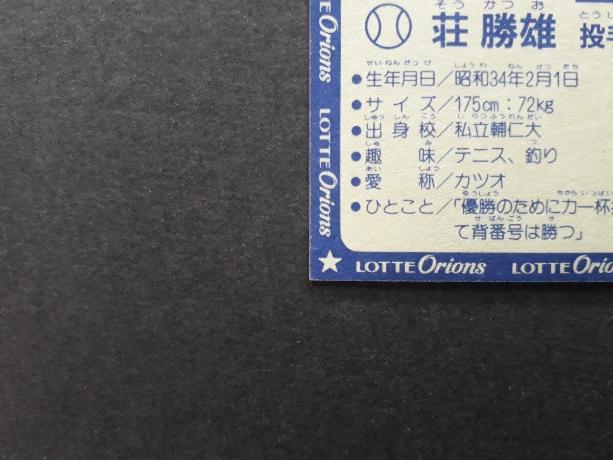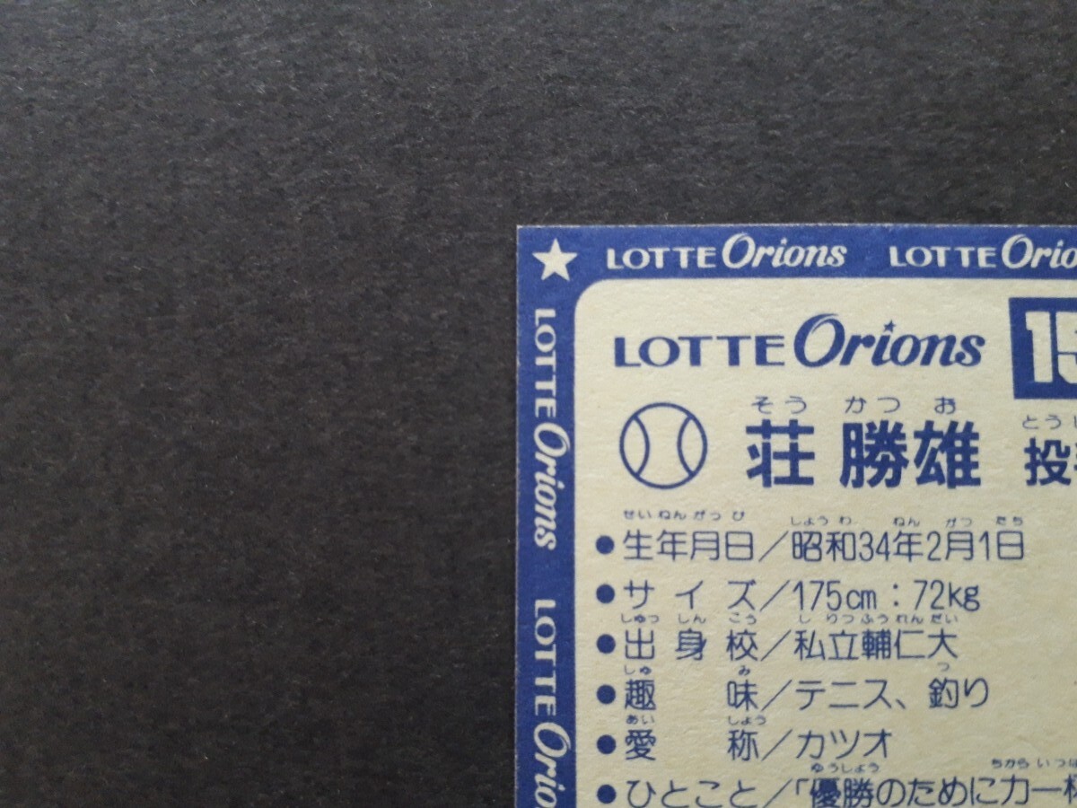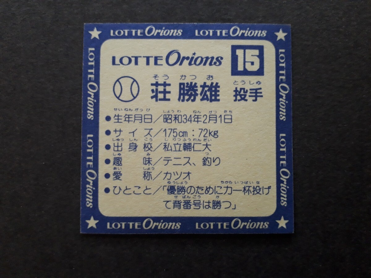 1980年代後半にロッテオリオンズのホームゲーム約20試合で、当時の監督・選手をモチーフとして作られた10種のシールを3枚入り1セットで約1000セット用意し、川崎球場に来場したファンに配布