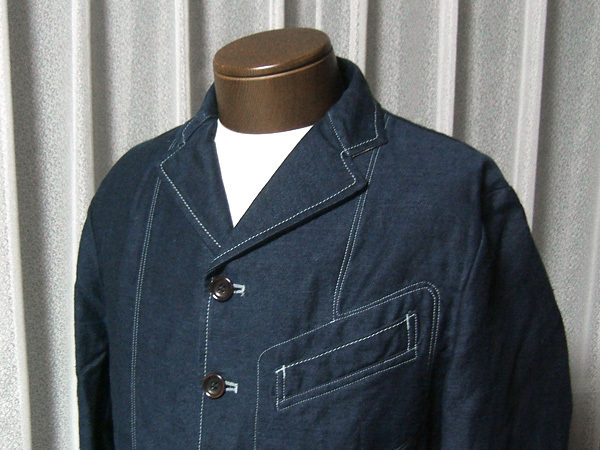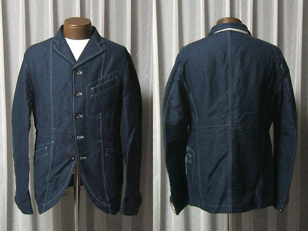新品 ジョンブル JOHN BULL クラシックジャケット 麻混紡デニム ブルー 青系 M サンプル