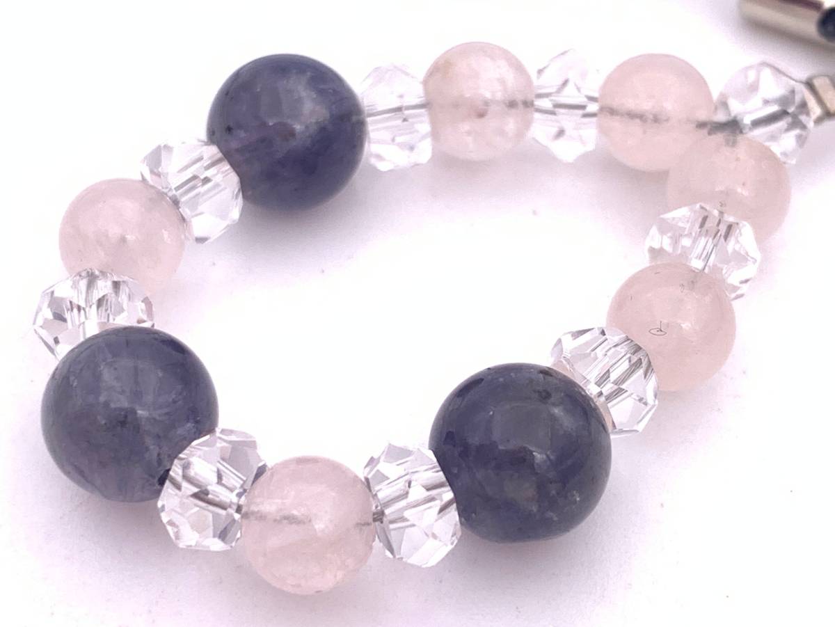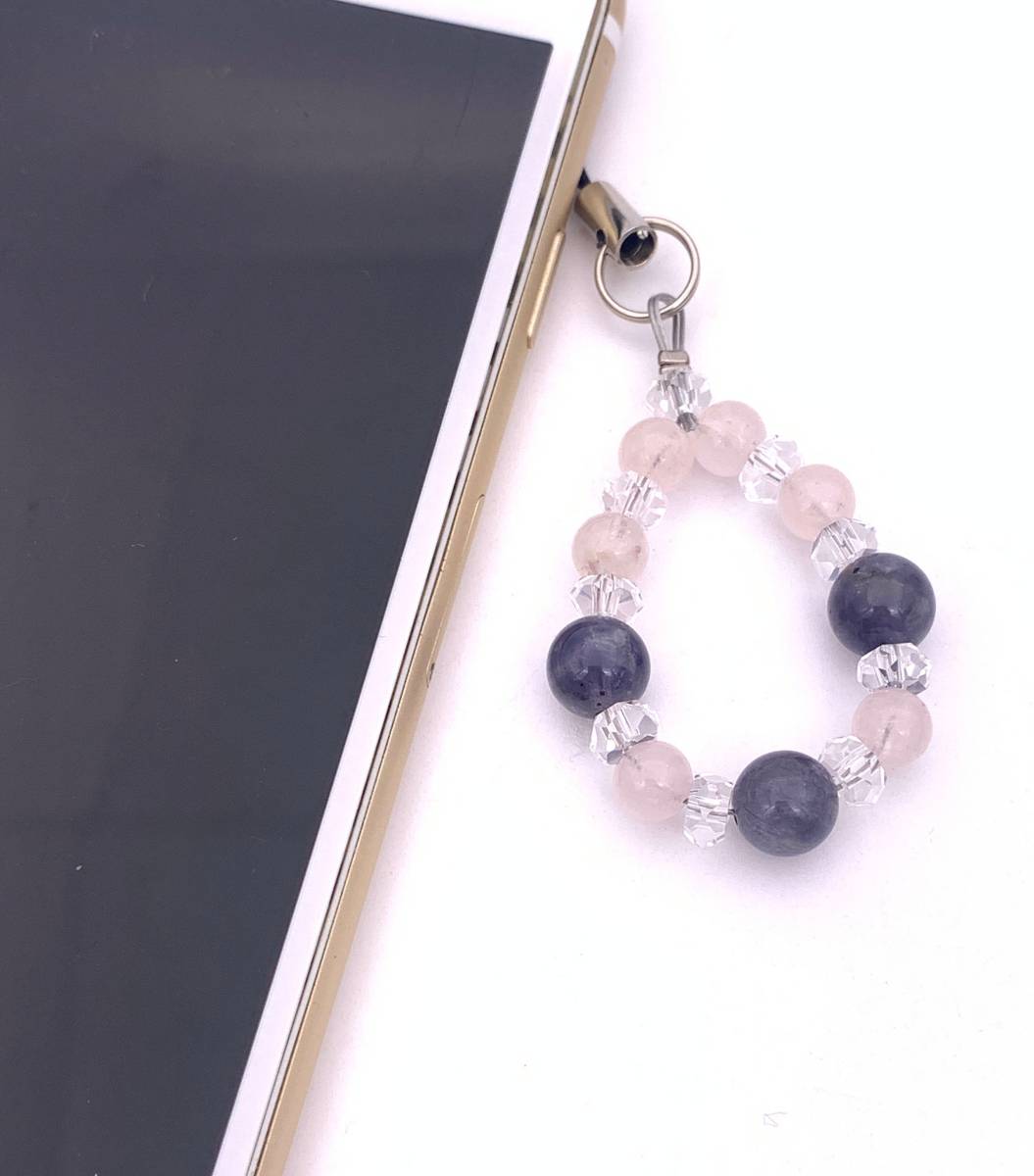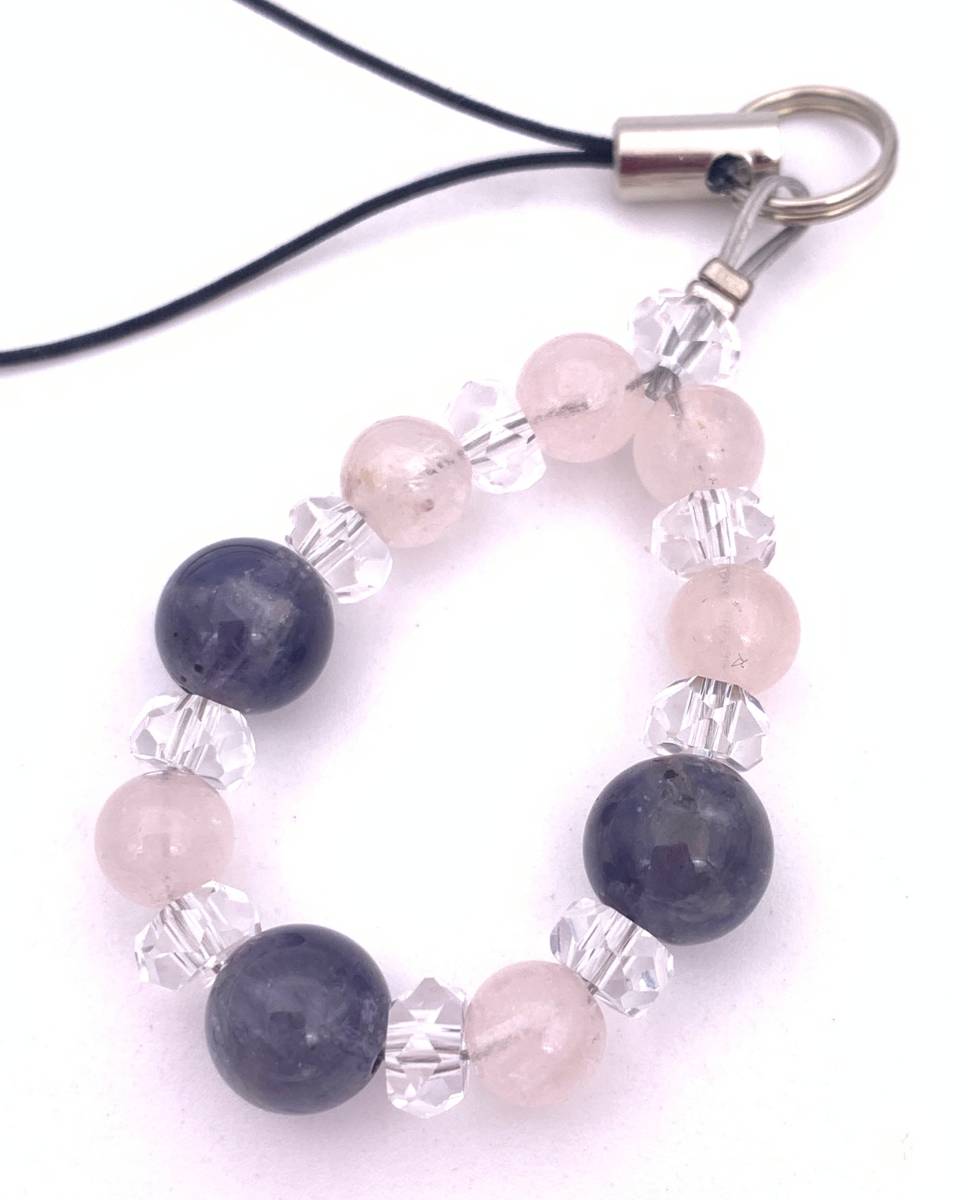 天然石モルガナイト(ピンクアクアマリン)&アイオライトのストラップ