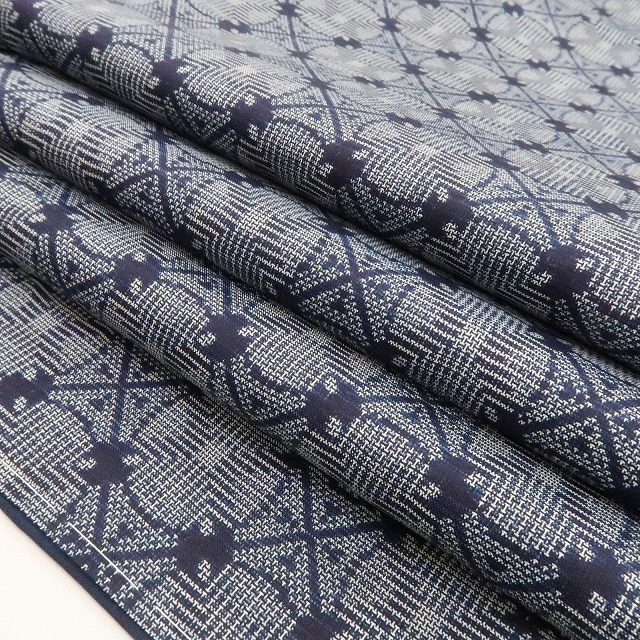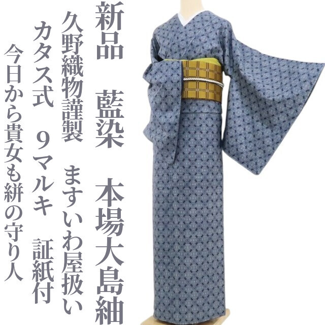 tomihisa 新品 久野織物謹製 ますいわ屋扱い“今日から貴女も絣の守り人”カタス式 9マルキ 証紙付 仕付け糸付 藍染 本場大島紬 4549
