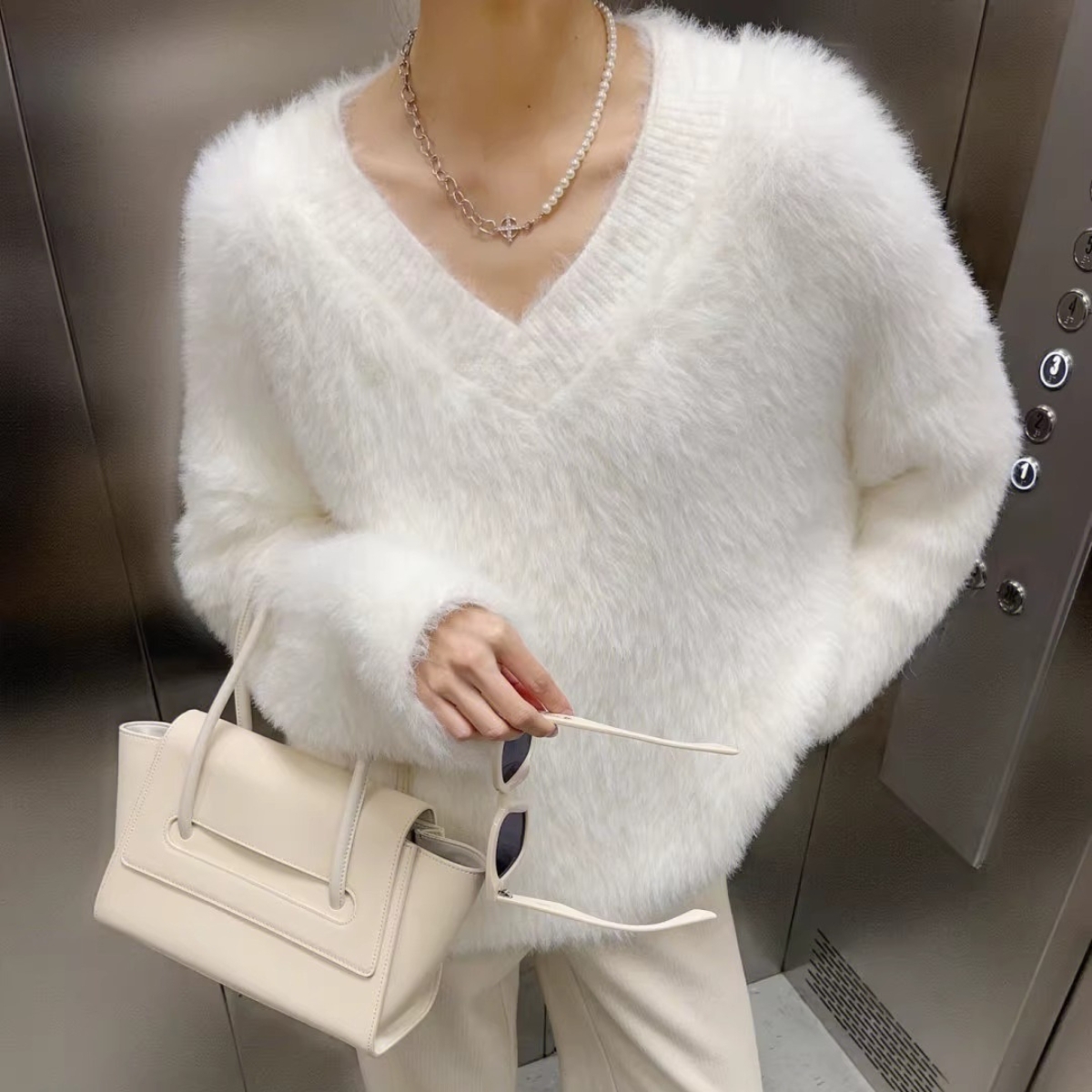 レギンスやジーンズ、カジュアルパンツなど様々なボトムスと相性抜群。Vネックで、可愛さとシャープさを兼ね備え、カジュアルにもきれいめにも合わせられる一枚です。