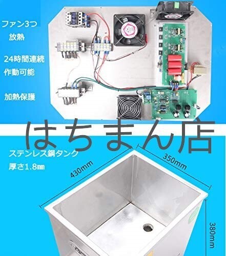 状態:新品未使用 【強い洗浄力】3L~30Lの大容量洗浄槽、40KHzの高周波で目には見えない細かい汚れや脂をスッキリ洗浄できます。超音波の力を利用し、液体を振動させ、洗浄力を得る仕組みにより、がんこな汚れに最適です! 【洗浄できるもの】PCB/アクセサリー/電子部品/ステンレス鋼製品/貴金属洗浄用の機器です。工場での部品洗浄に大活躍しています。 【多機能】①30分間タイマー:時間0~30min設定可能 ②消費電力調節可:機器容量によって消費電力50W~600W調節できます。(精密アクセサリー/電子部品洗浄に最適) ③温度設定:洗浄物により温度0~80℃設定可能(例えば、金属は60℃、それ以外の洗浄物は40℃ぐらいで洗浄できます。) ★商品写真はできる限り実物の色に近づけるよう努めておりますがご使用のPCモニター設定や部屋の照明により多少、色の変化が感じられる場合がございます