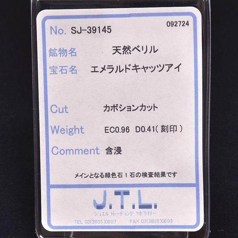 | 商品名 | 0.96ct 天然 エメラルド キャッツアイ リング |
