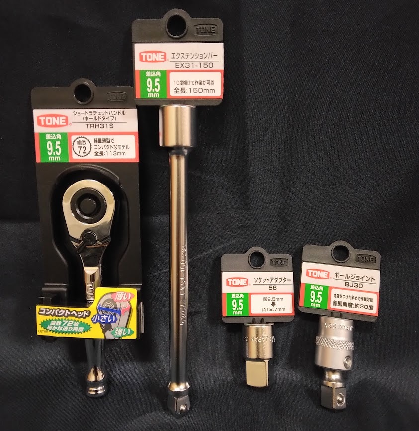 トネ TONE ショートラチェットハンドル TRH31S エクステンションバー EX31-150 ソケットアダプター 58 ボールジョイント BJ30 差込角9.5mm