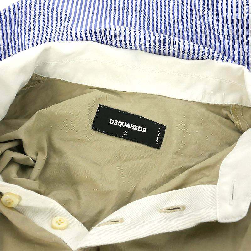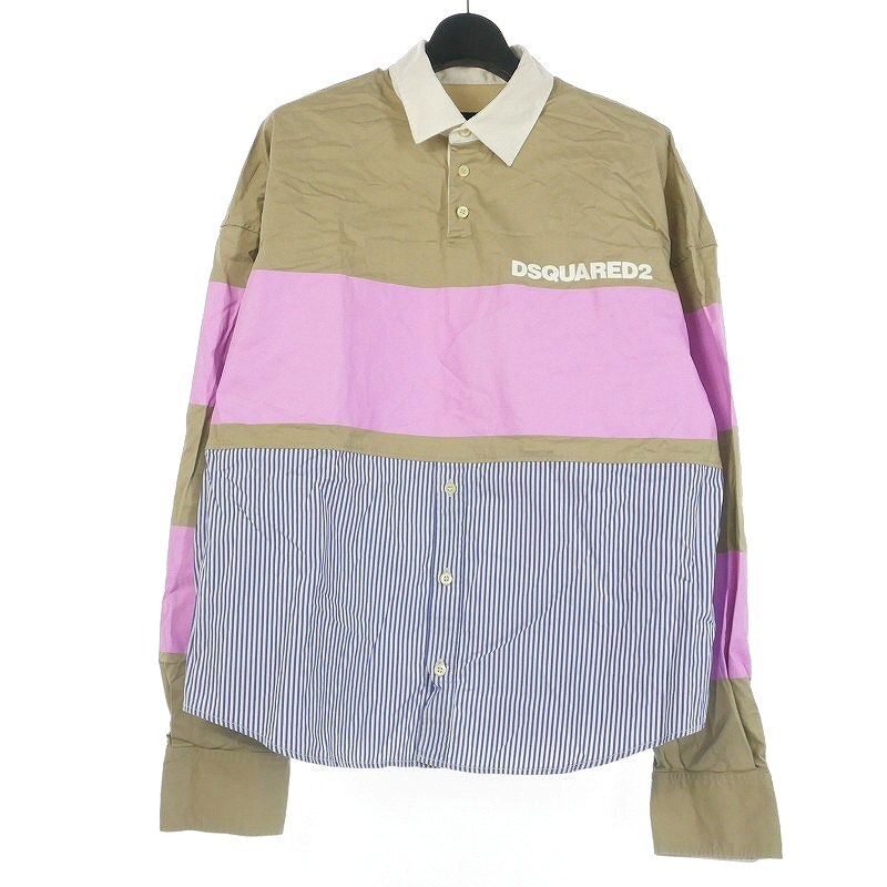 ディースクエアード DSQUARED2 24SS Camicia ibrida oversize ストライプ 切替シャツ 長袖 レギュラーカラー S マルチカラー