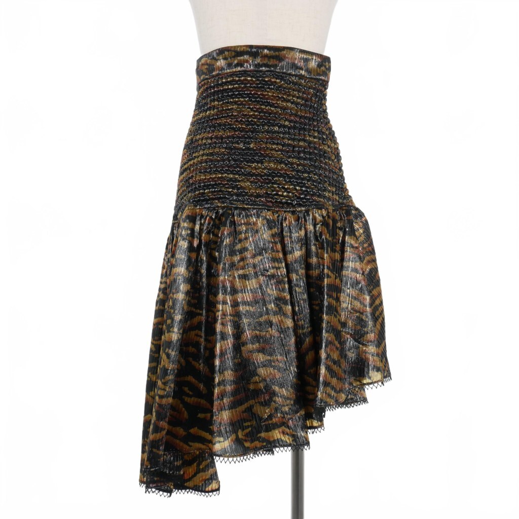 ルイヴィトン LOUIS VUITTON 21AW ハイウエスト ナイロン スカート アシンメトリー レオパード柄 36 黒 ブラック RW212B IR1 FLJU67