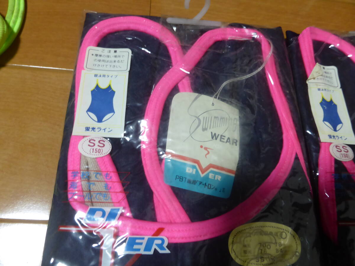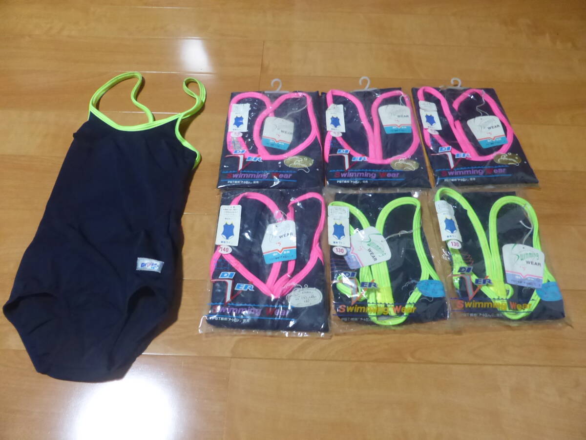 未使用☆当時物 女の子 スクール水着 150 140 130 蛍光ライン 昭和レトロ まとめ7着☆