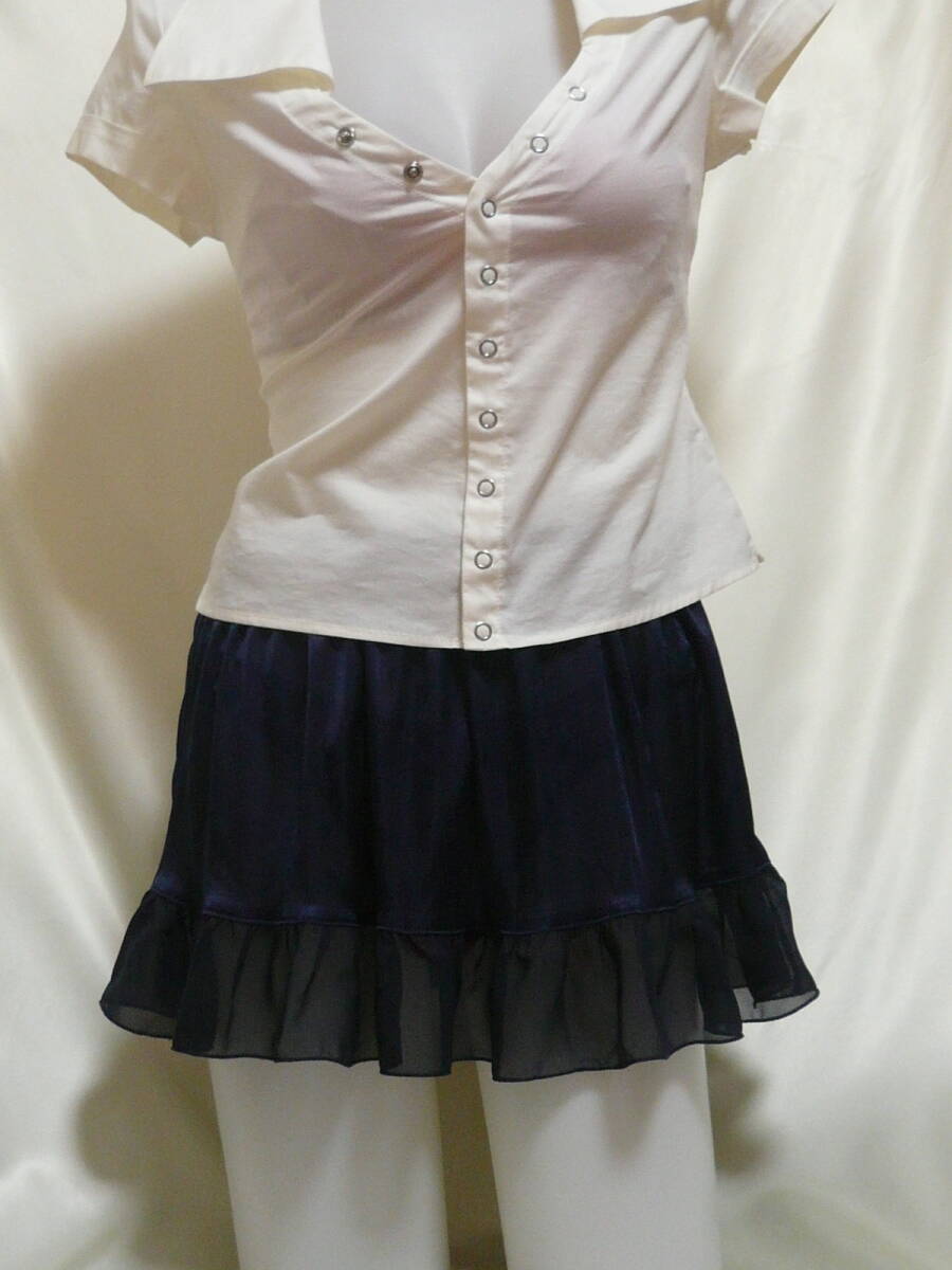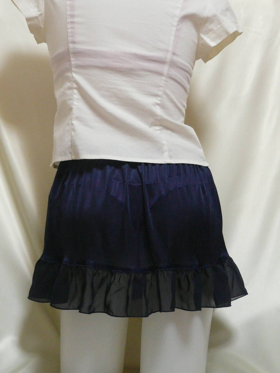 ♪♪濃紺地に黒シフォンのマイクロミニ☆しっとりな手触り&シースルー^^♪