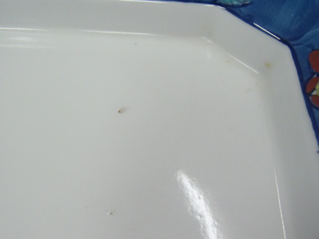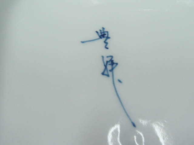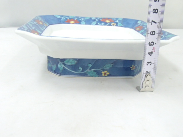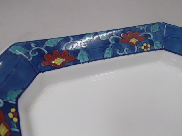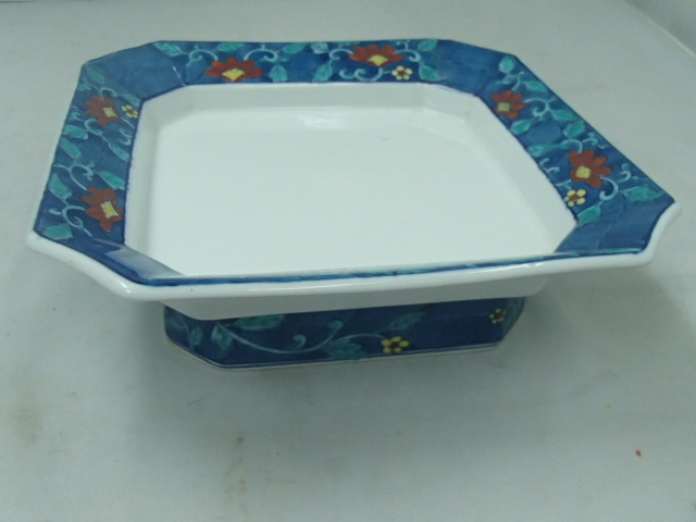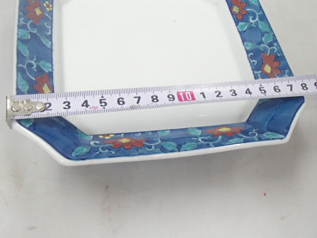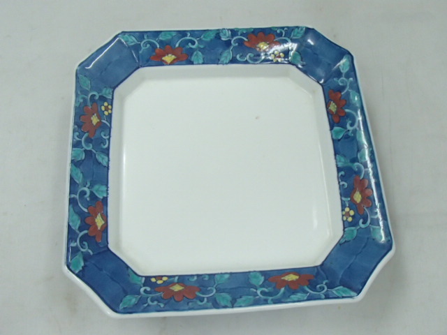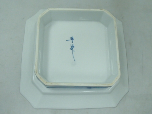 | #64759 【詳細不明】 角皿 作者 裏の名前読めません! 豊? 産地不明 窯元不明 花柄 画像でわかる方いかが? | ||
