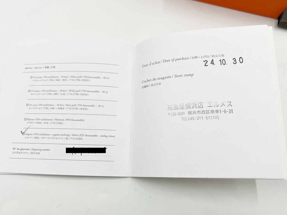 | サイズ・付属品 | 腕回り:約20cm 105g/箱 証明書(2024年10月30日国内ブティック購入)クロス |