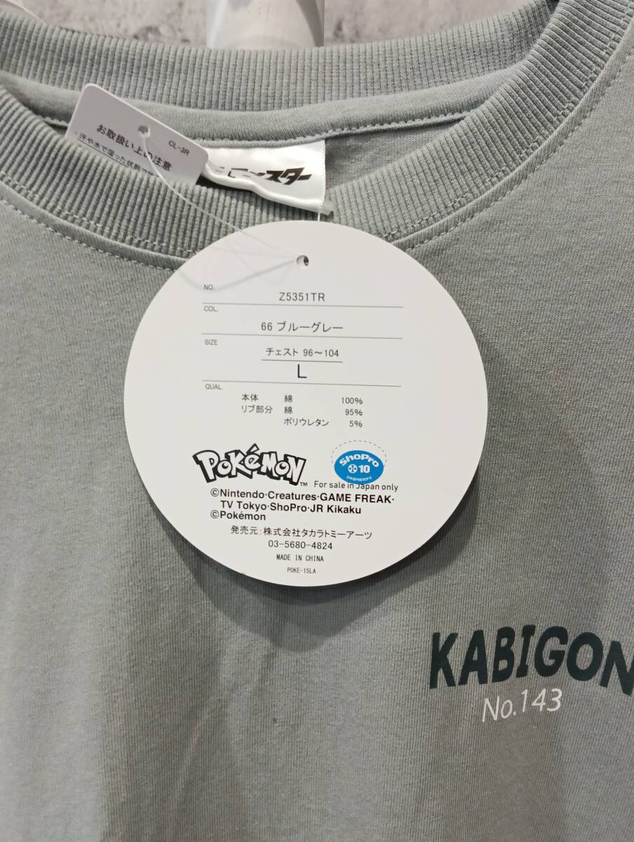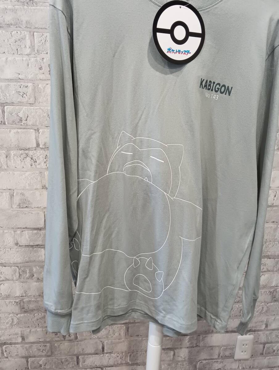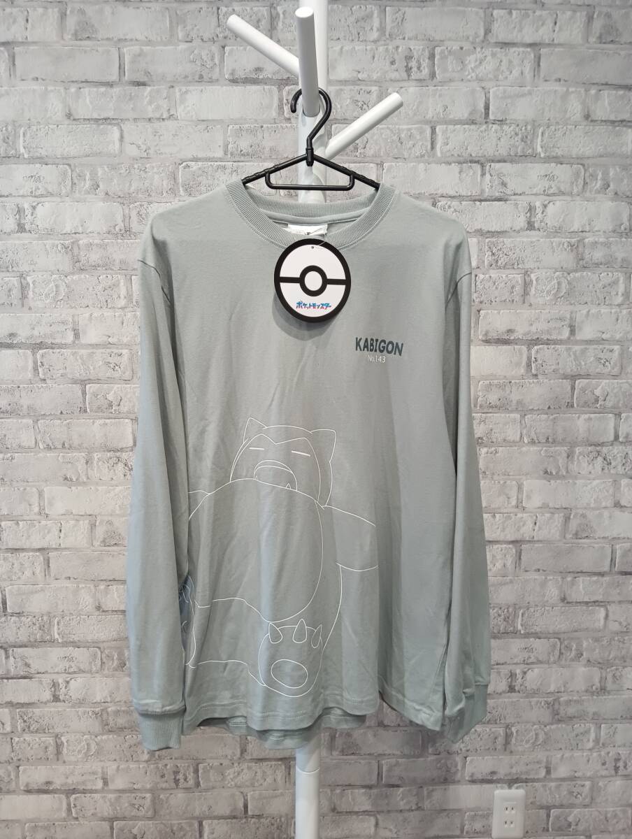L 新品 ポケモン カビゴン グレーぽいブルー 綿ゆったり長袖Tシャツ