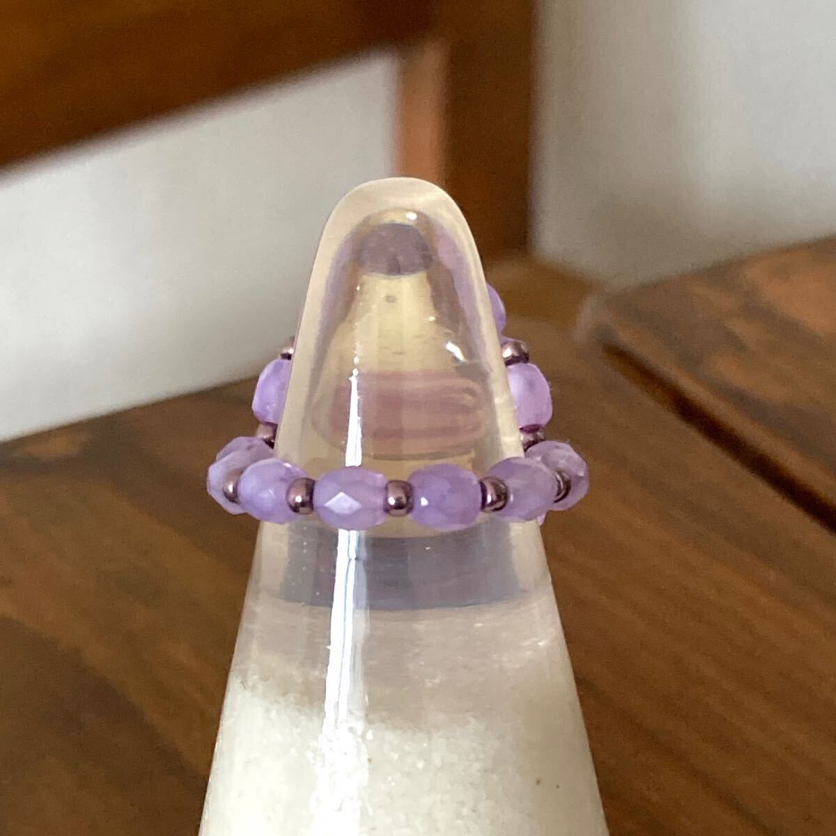 15-17号 ビーズ リング 指輪 ハンドメイド  ランプワークビーズのリング パープル系 です。