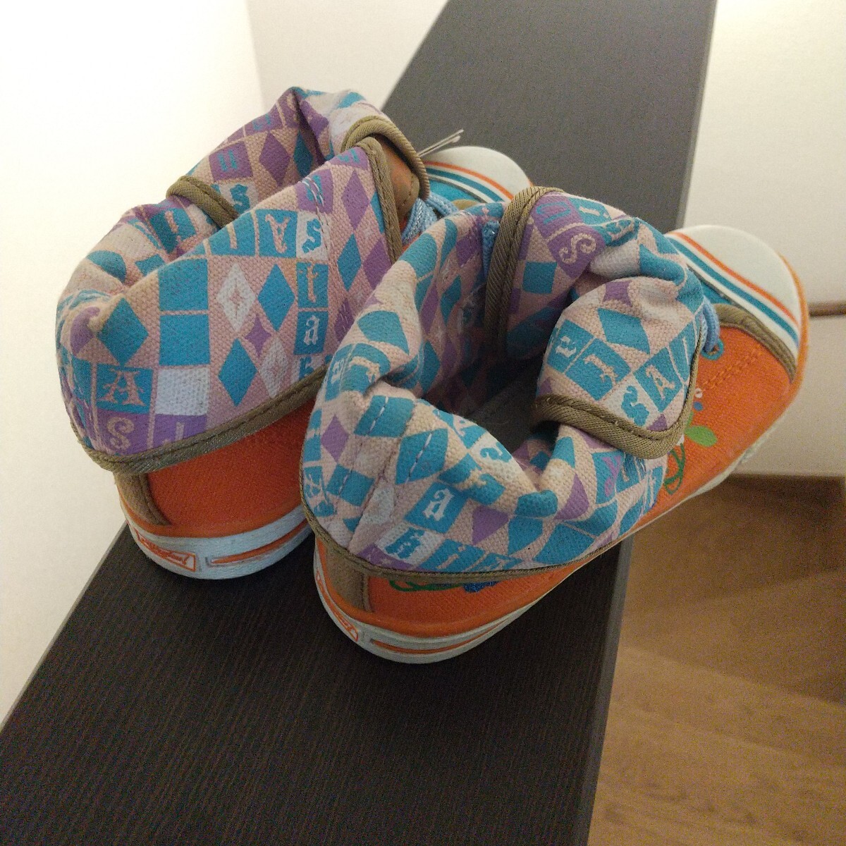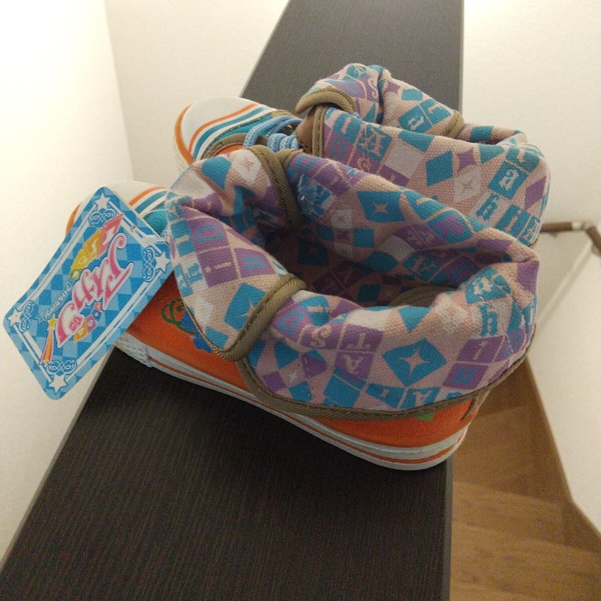 タグ付き未使用品ですが、白い部分の黄ばみ、保管時の汚れがあります。
