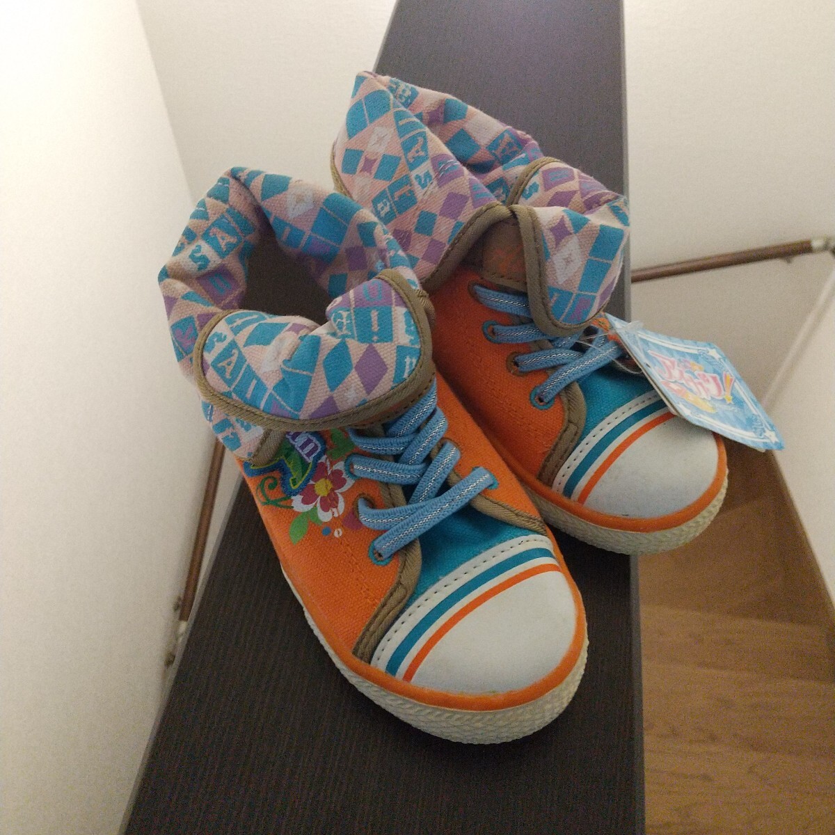 タグ付き未使用品ですが、白い部分の黄ばみ、保管時の汚れがあります。