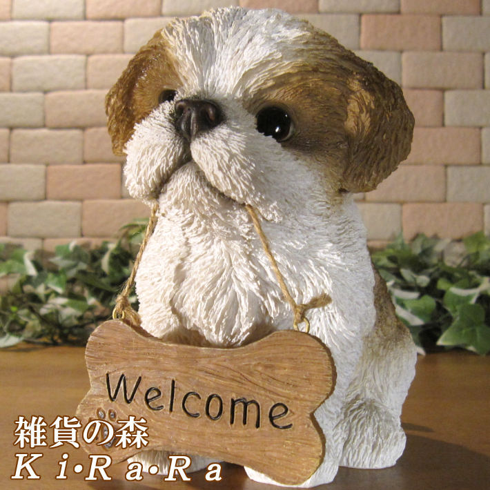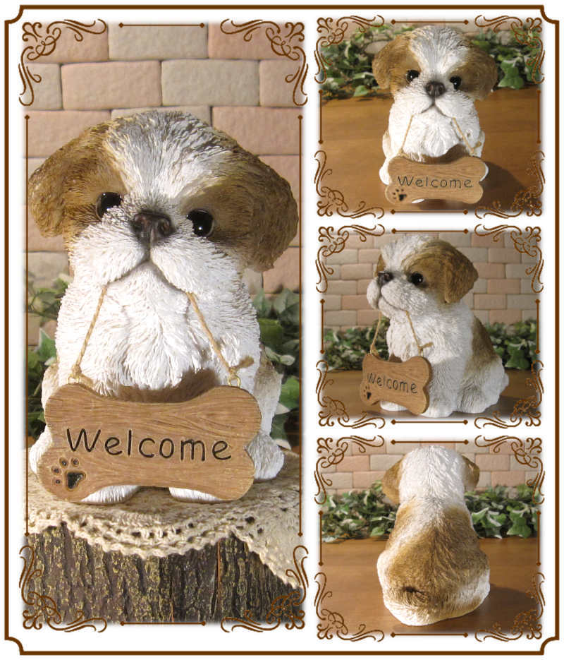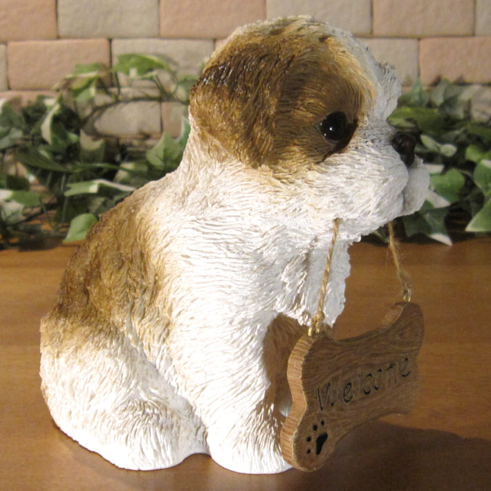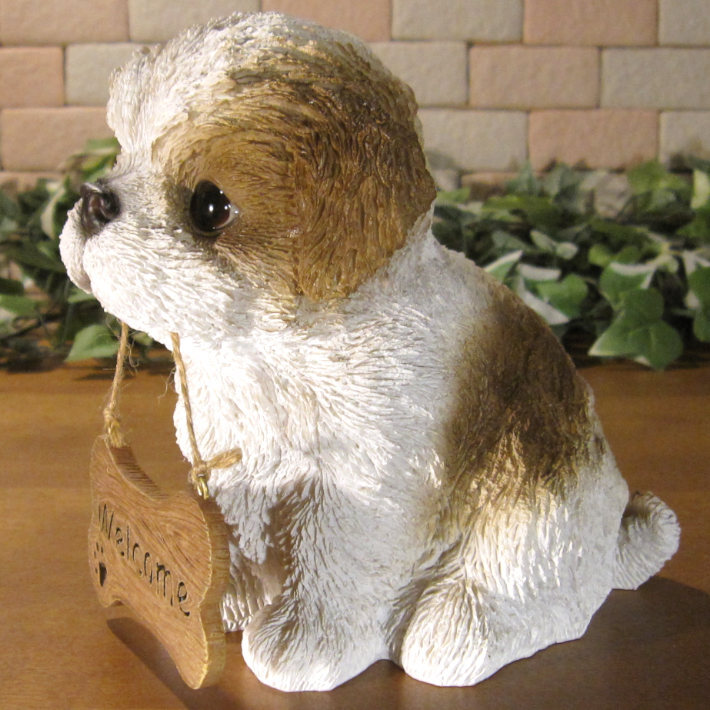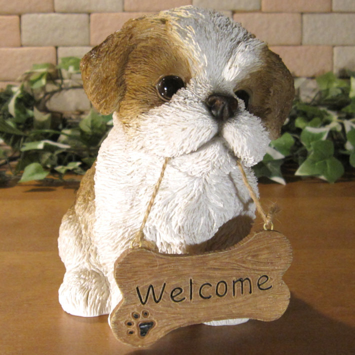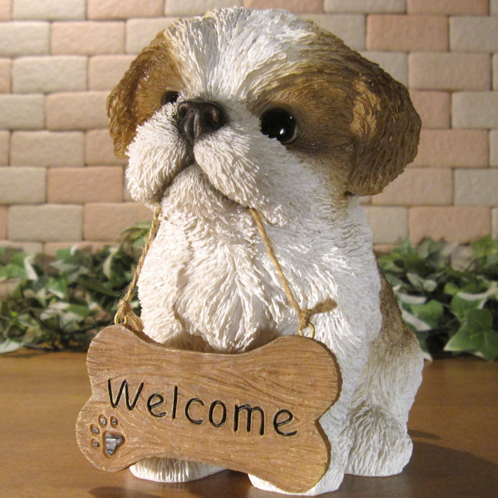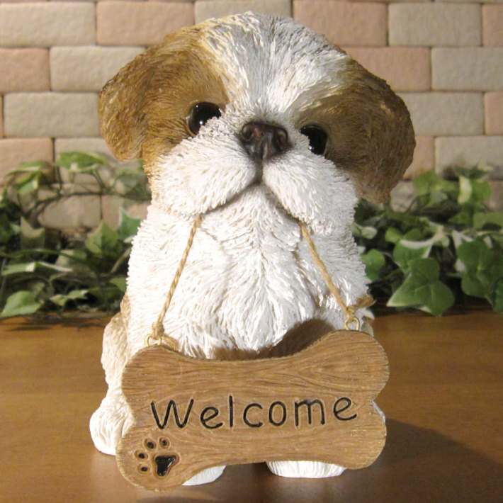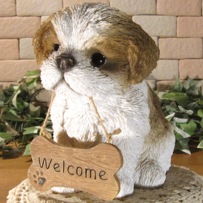 置物 動物 可愛い 犬の置物 シーズー シンウエルカムボード リアル 仔いぬのオブジェ ガーデニング ベランダアート 装飾