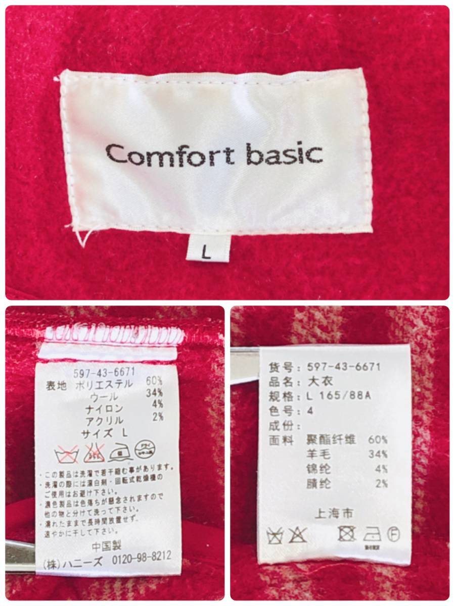 YZ0007 Honeys ハニーズ ComfortBasic コンフォートベーシック レディース アウター ダッフルコート 長袖 Lサイズ レッド 赤 ウール混 冬