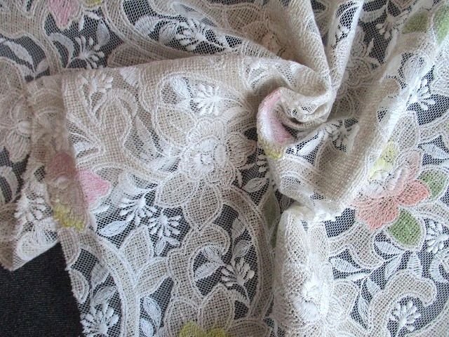 | 希少★両耳スカラップチュールレース全面花豪華刺繍生地*マスクやポイント小物にも♪ | |||