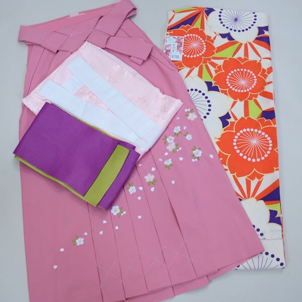 項目 | 着物袴フルセット (適合身長:約135cm~143cm ジュニア用へお仕立て直し致します。) ・二尺袖着物 ・二尺袖長襦袢(半襟付き) ・袴 ・袴下帯(浴衣帯にも使用できます。) |