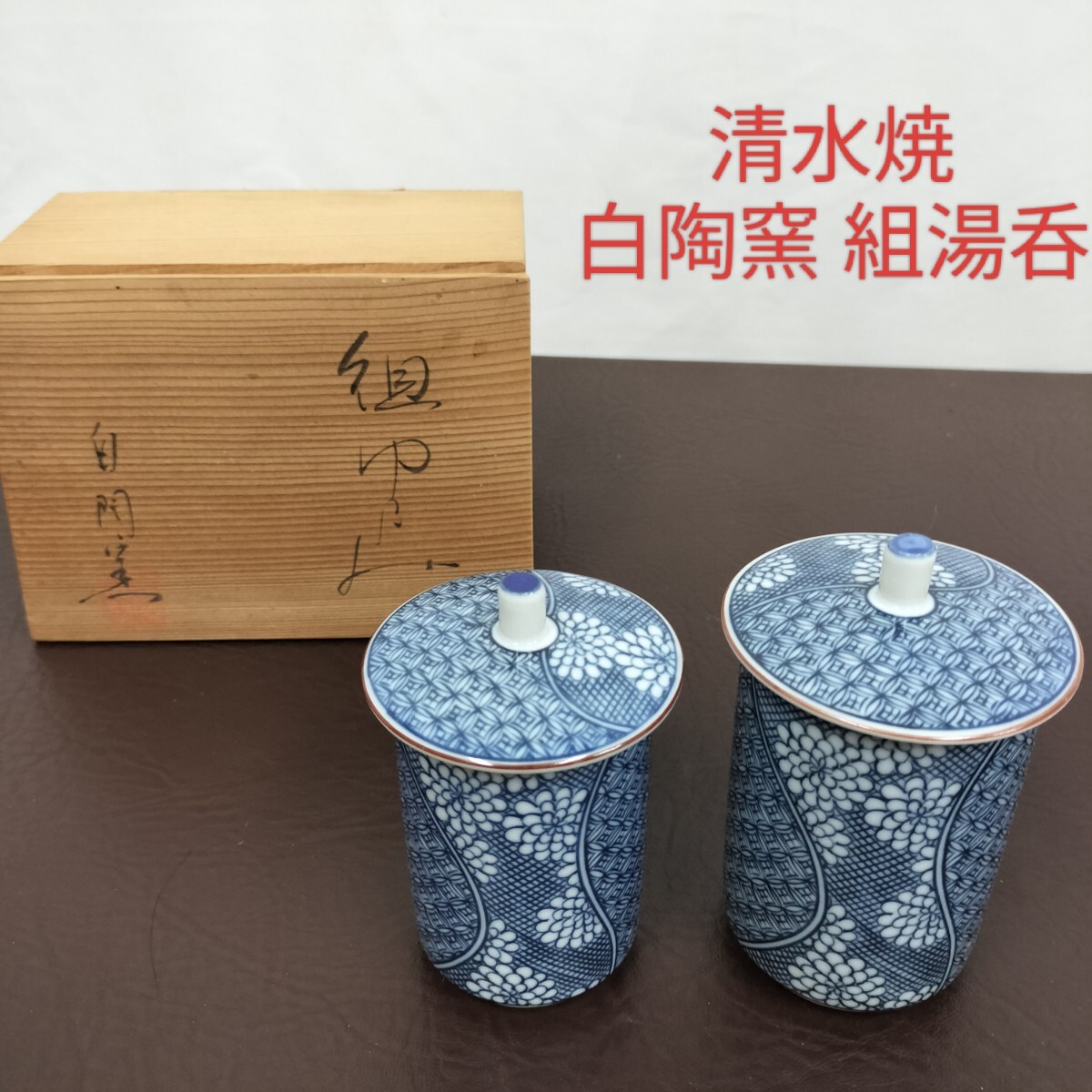 ★清水焼 白陶窯 蓋付湯呑み茶碗