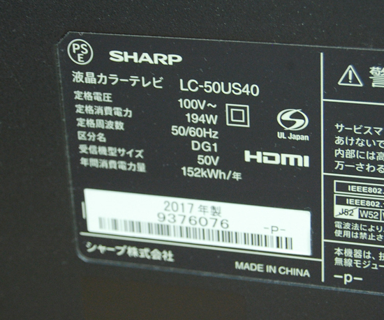 SHARP 液晶カラーテレビ LC-50US40 2017年製 50インチ AQUOS 動作確認済み NETFLIX シャープ アクオス ネトフリ 札幌市