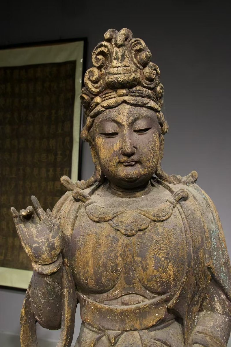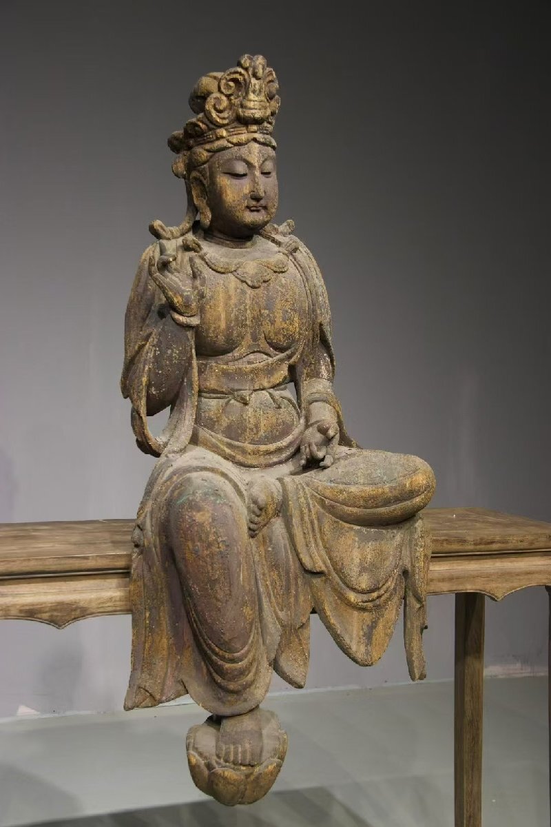 ■観心・時代旧蔵■B1005明時代 楠木自在観音造像 楠木細工彫刻★仏教古美術★仏像★廃寺買出品 高さ110cm横幅56cm奥行き42cm