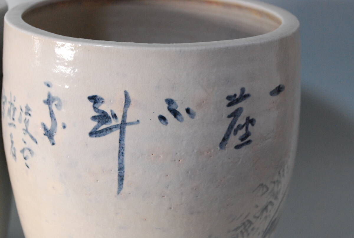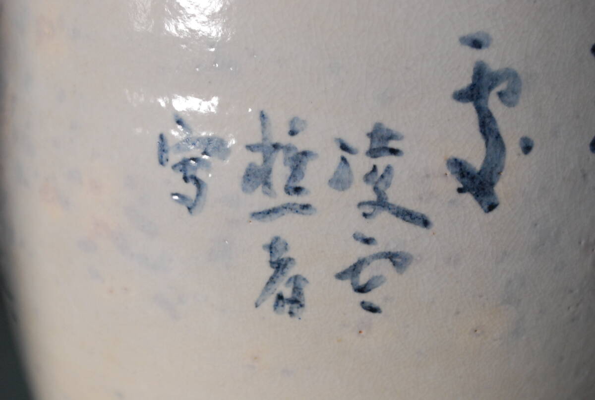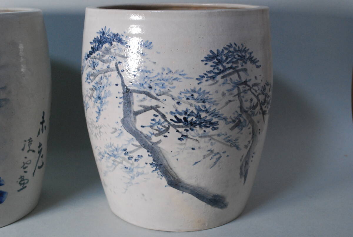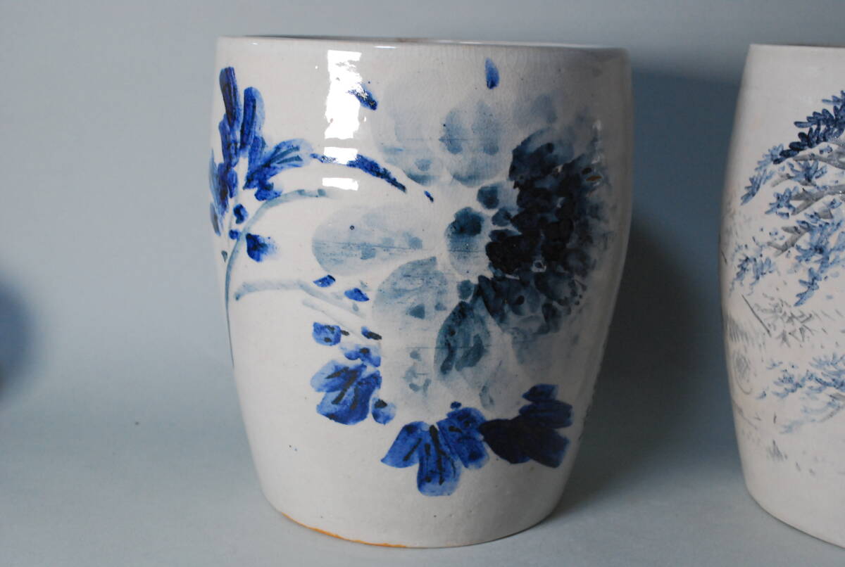平安北峯製の火鉢に渡瀬凌雲による染付の絵付けが施されている珍しいお品です。