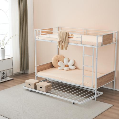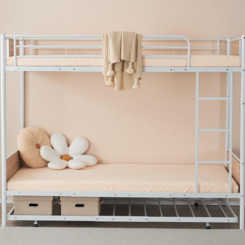 【新品】【三段ベッド 移動式引き出し付きベッドフレーム】 パイプベッド シングル 木 収納 北欧風 子供部屋 スチール 耐震 ベッド SDG