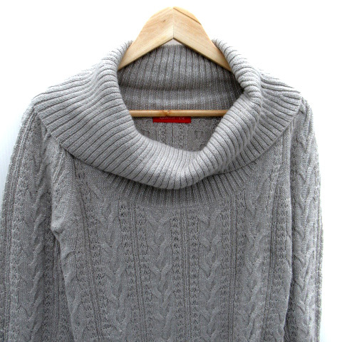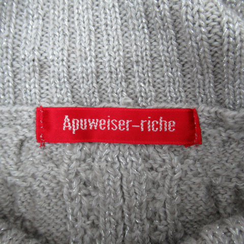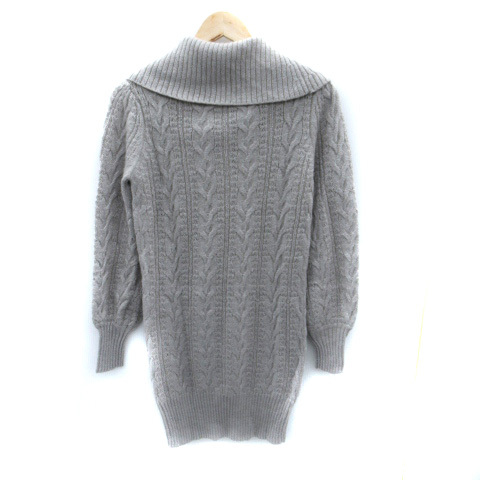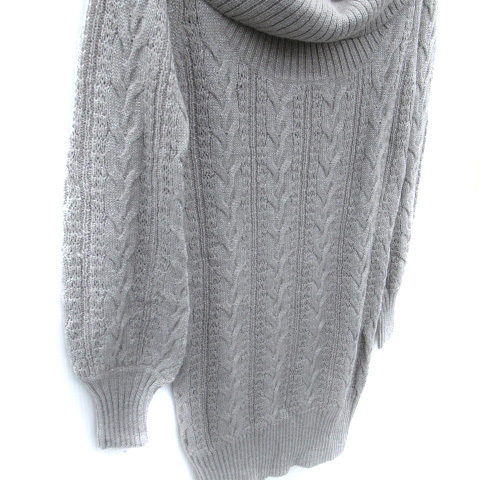 アプワイザーリッシェ ニットワンピース ミニ丈 長袖 オフタートルネック ケーブル編み ラメ アルパカ混 2 グレー /SM17 レディース