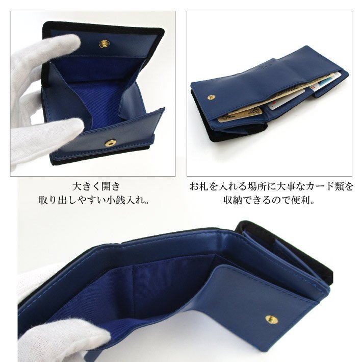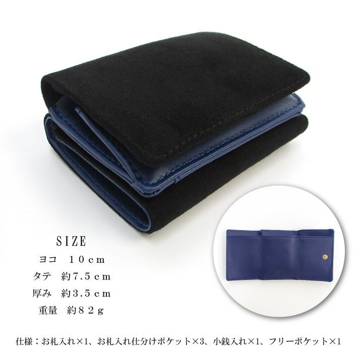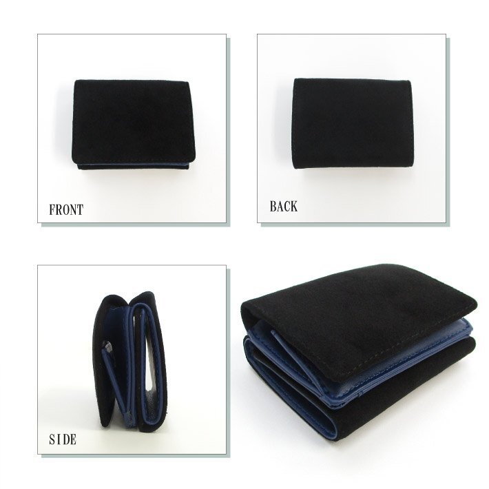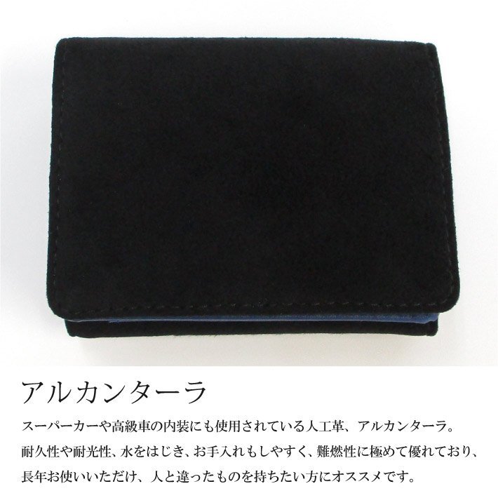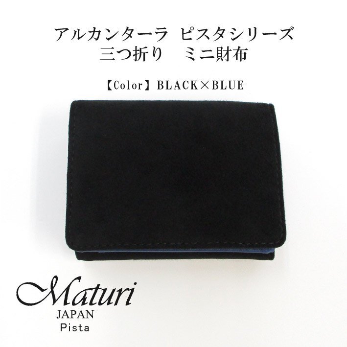 【Maturi マトゥーリ】 アルカンターラ ピスタシリーズ 三つ折り ミニ財布 ギフト MR-103 黒×青 定価25300円