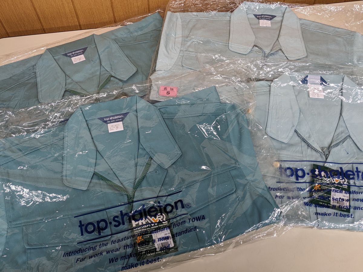ii712● 【新品・タグ付き】 ワークシャツ4枚まとめて サイズM×2 & S×2 緑色系 長袖 作業着 作業服 建築 現場/100