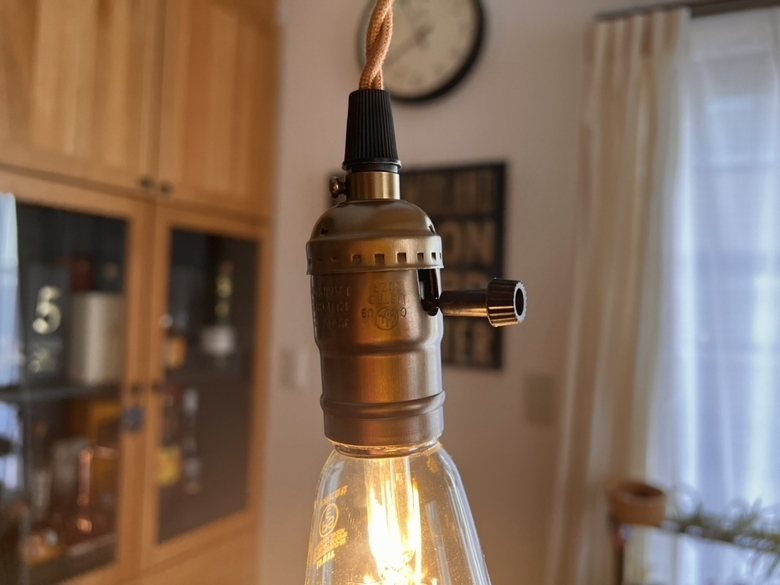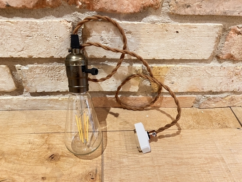 電灯コードはブラウン色でビンテージな風合いがあります。照明ON OFFの切り替えスイッチ部分やソケットの風合いもアンティークな感じでとてもオシャレです。