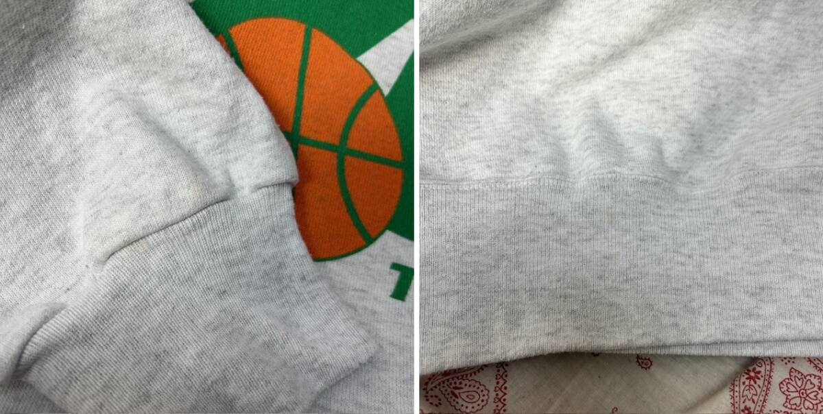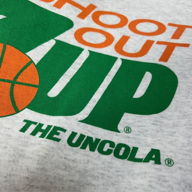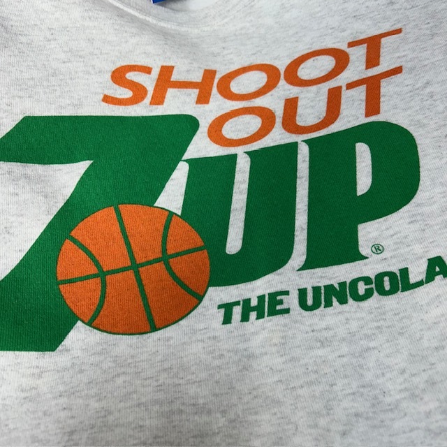 ●商品説明・・・アメリカ古着になります。90年代のオールド・ヴィンテージのチャンピオンの7UP(セブンアップ)のTHE UNCOLA(コカ・コーラに対抗する意味を持ったユーモアのあるロゴ)のロゴ入りのスウェットです。ボディーはチャンピオンで、made in USA (アメリカ製)で、素材はコットンとポリの50/50で、色は薄いライトグレーです。リバースウィーブのようなゆったりしたアームホールで、生地感的にはリバースよりも柔らかめな着やすい生地感です。USA XLサイズです。