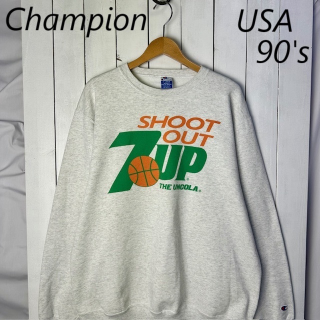USA古着 90s USA製 Champion 7up スウェット XL 薄グレー 飲料企業物 オールド ヴィンテージ チャンピオン アメリカ古着 ●246