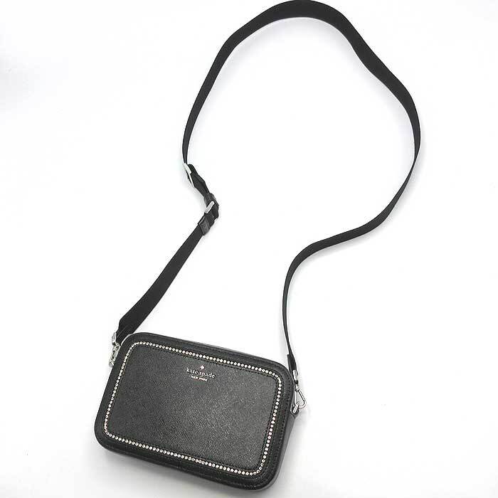 ■ケイトスペード ニューヨーク バッグ ショルダーバッグ kate spade NEW YORK マディソン レザー クリスタル メタルロゴ ミニ カメラバッグ 斜め掛け KJ955 001 (ブラックマルチ) アウトレット レディース madison medium mini camera bag crossbody
