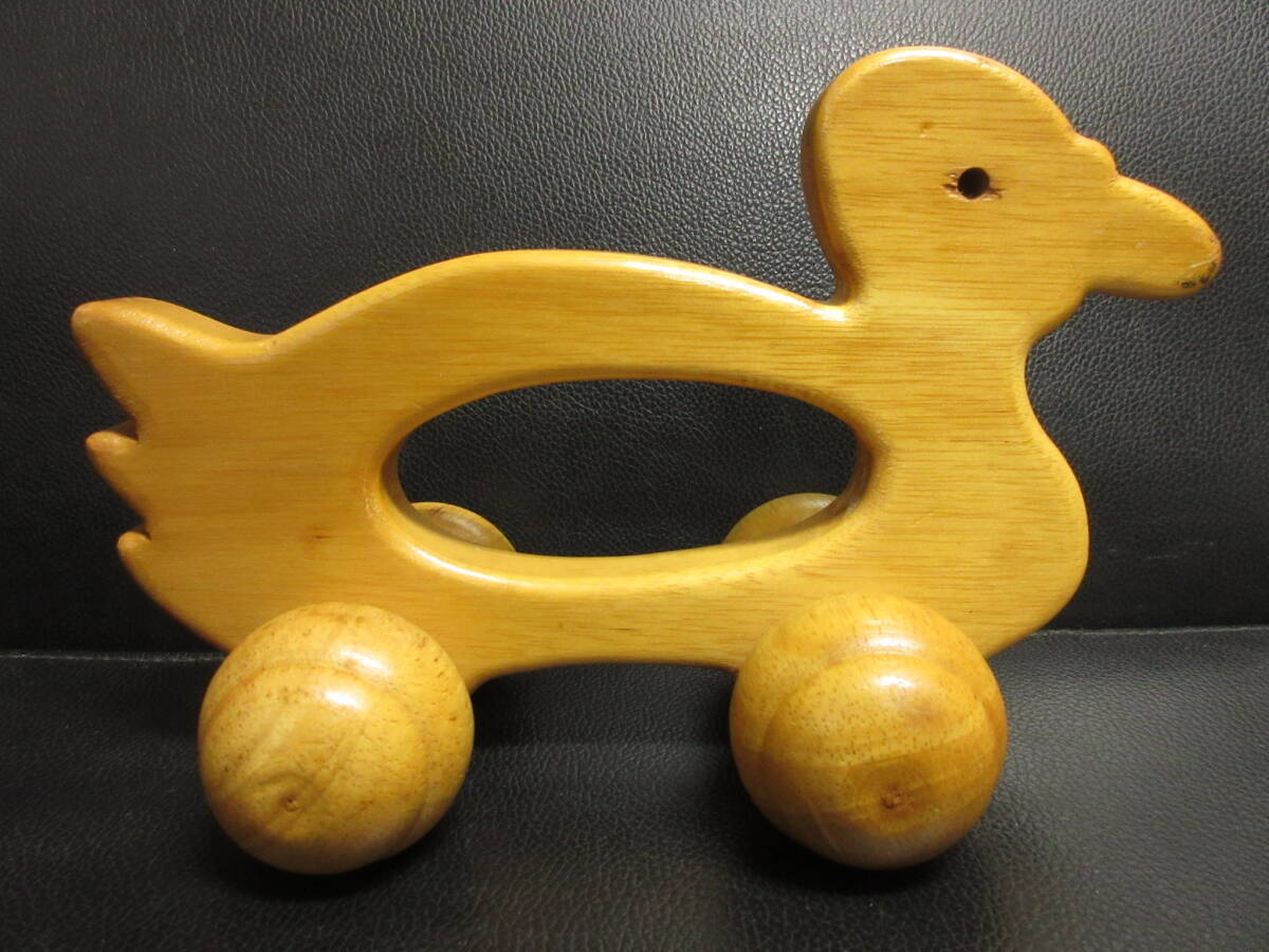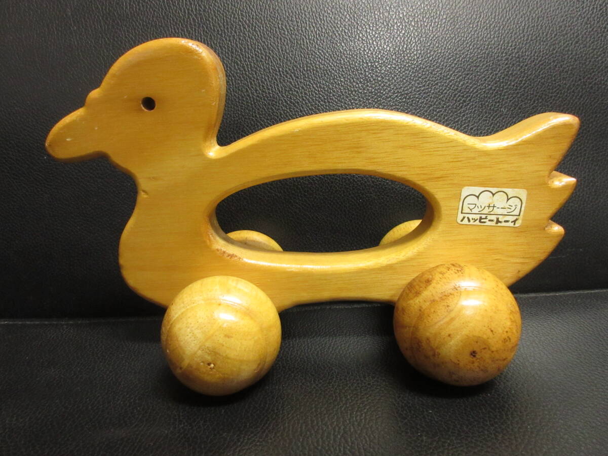《玩具》木製 「ハッピートーイ:マッサージ アヒル」 高さ:約13cm 木のおもちゃ 指圧、ツボなどのローラー式