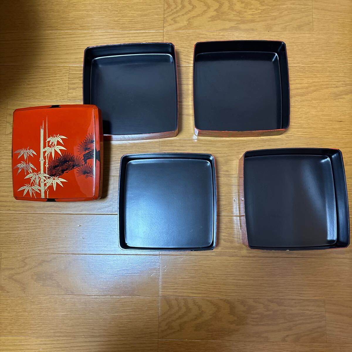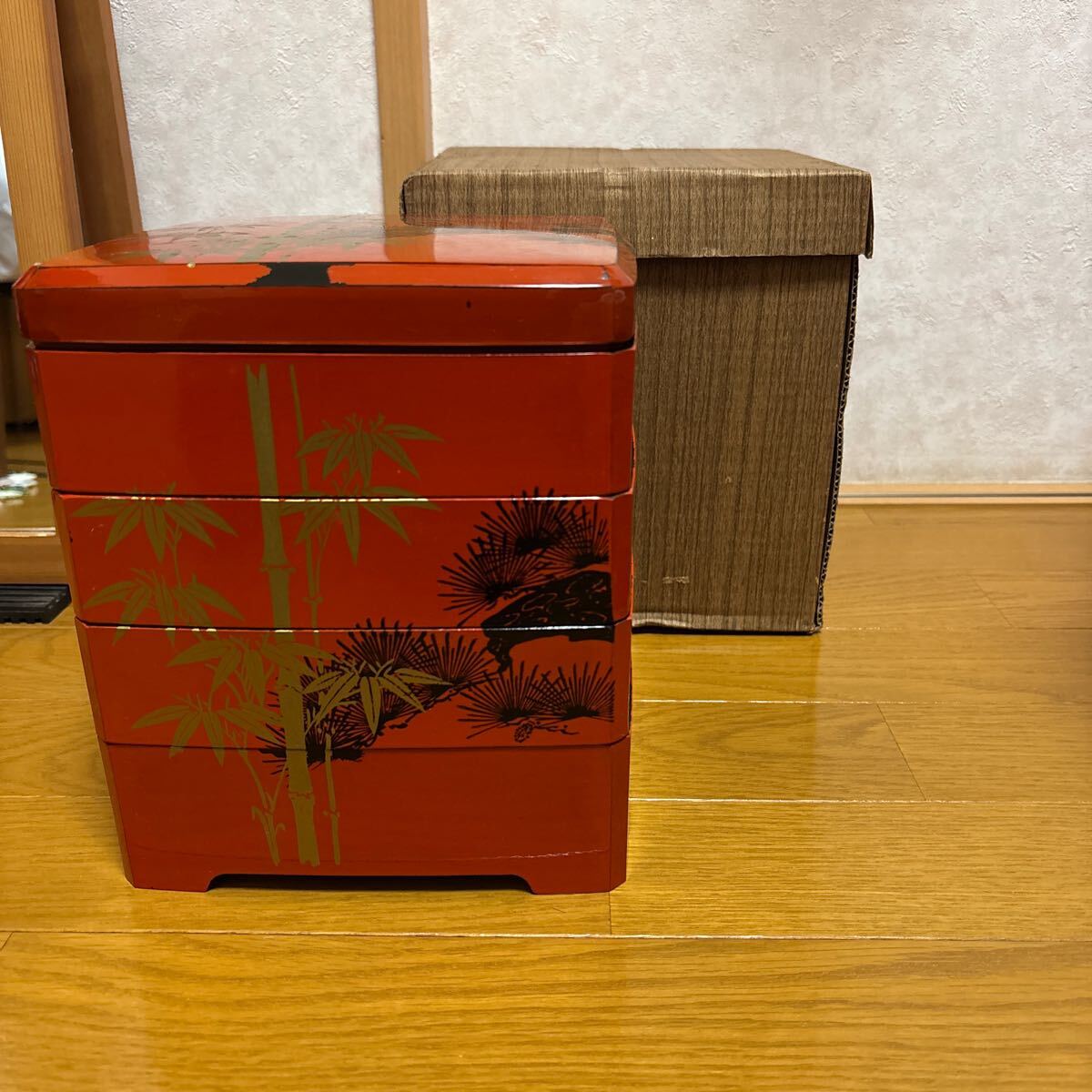 箱と包み紙は経年劣化の汚れやシミがあります。重箱自体は綺麗で軽く拭き取り済みです。