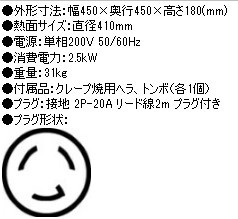 商品名:電気クレープ焼器 1連 単相100V W410×D410×H120