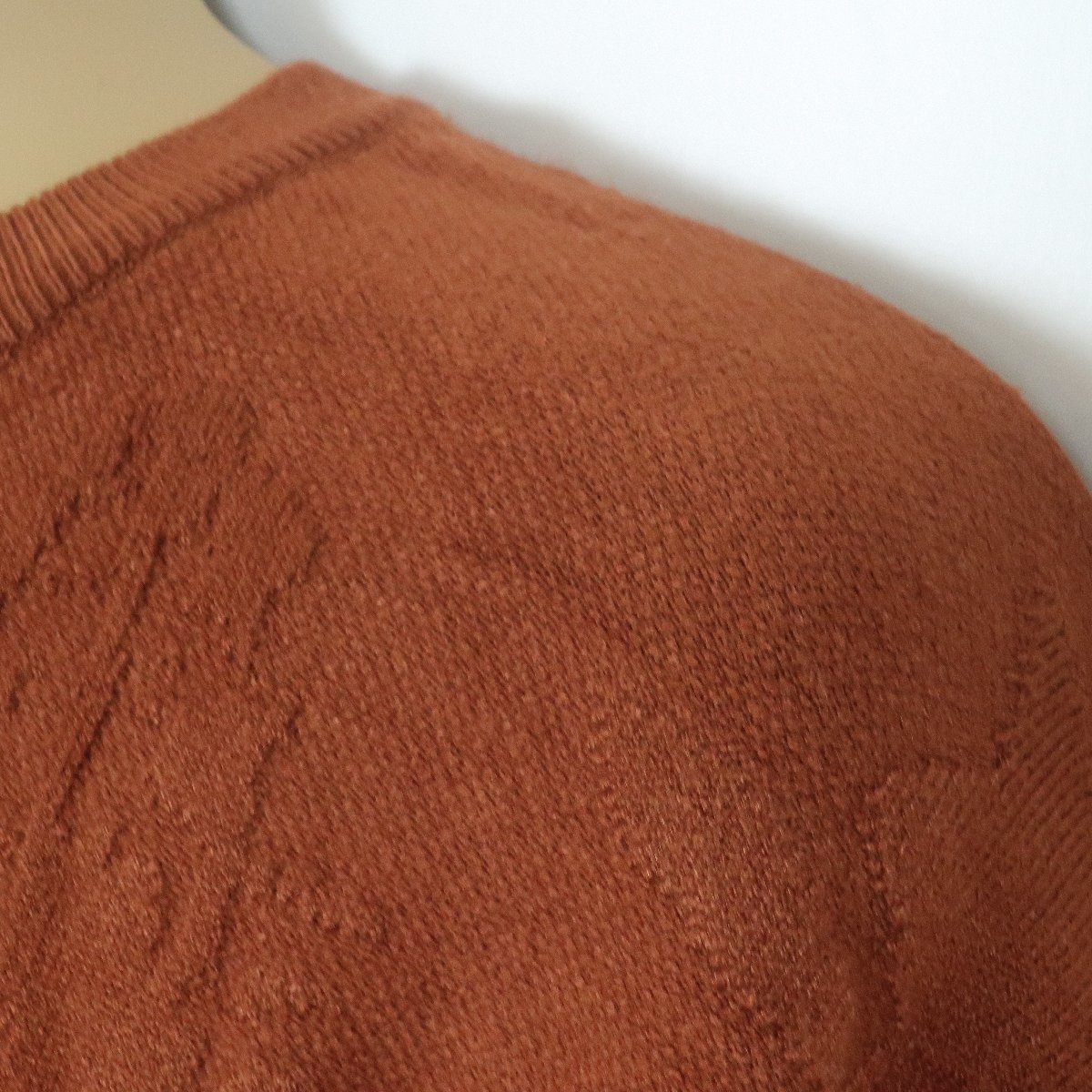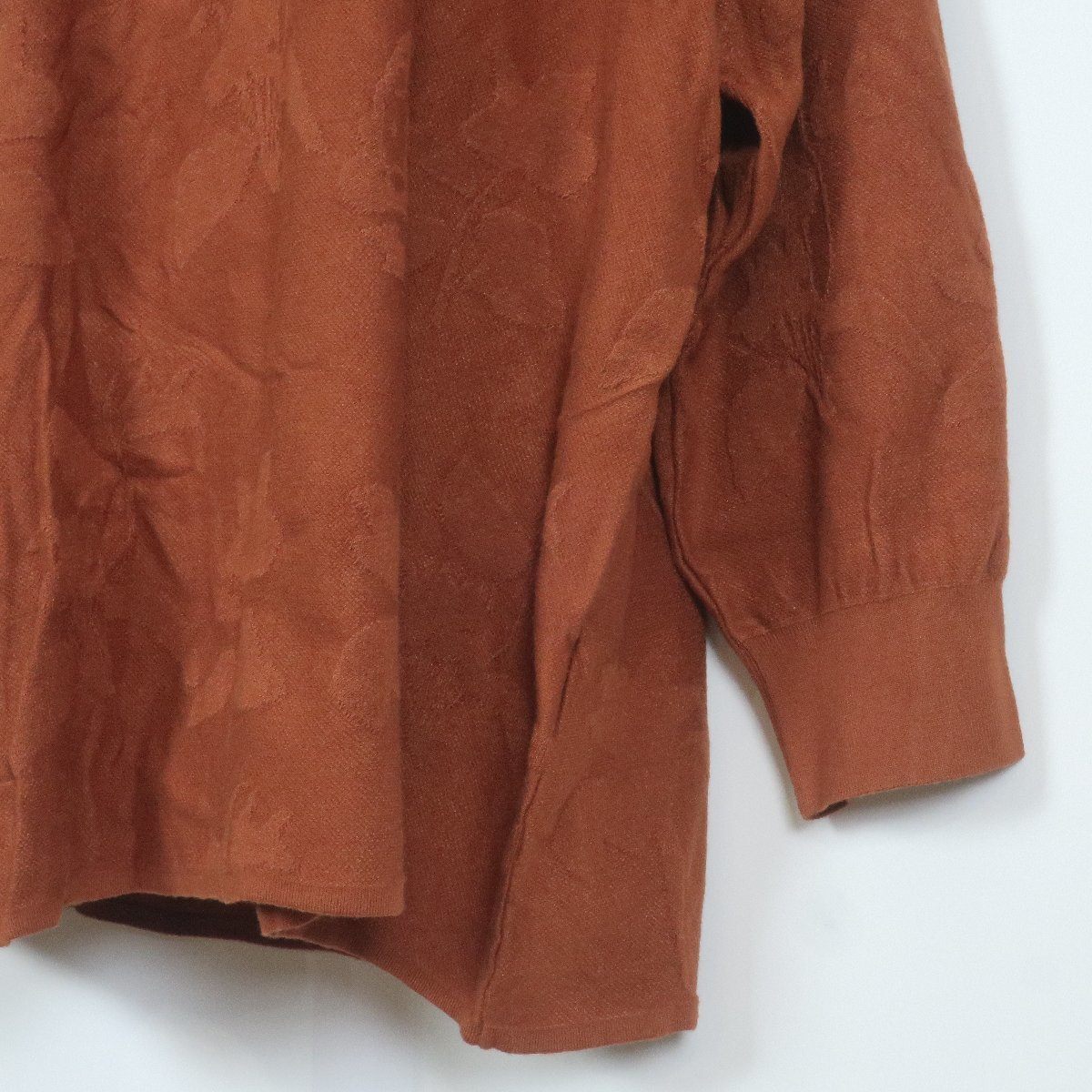 | 商品説明 | 【実寸約】肩幅58袖丈53.5バスト130着丈71.5 (cm) 【サイズ表記】 15号 【素材】レーヨン69ポリエステル31 【状態】普通の使用感のあるお品物 【デザイン】 オレンジブラウン系 花模様がフェミニンな長袖ニットです。 袖口はリブ編み。 |