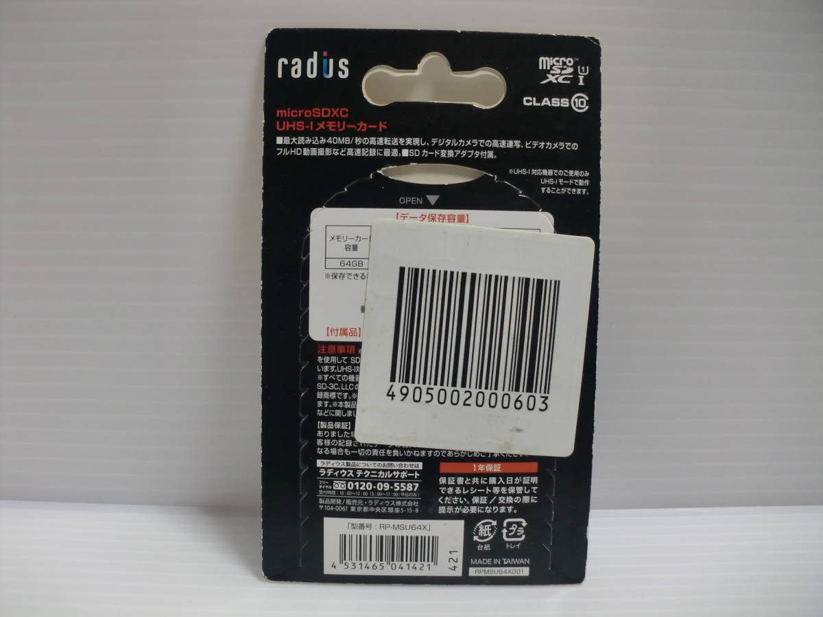 未開封品・未使用品 microSDXCカード 64GB radius メモリーカード microSDカード