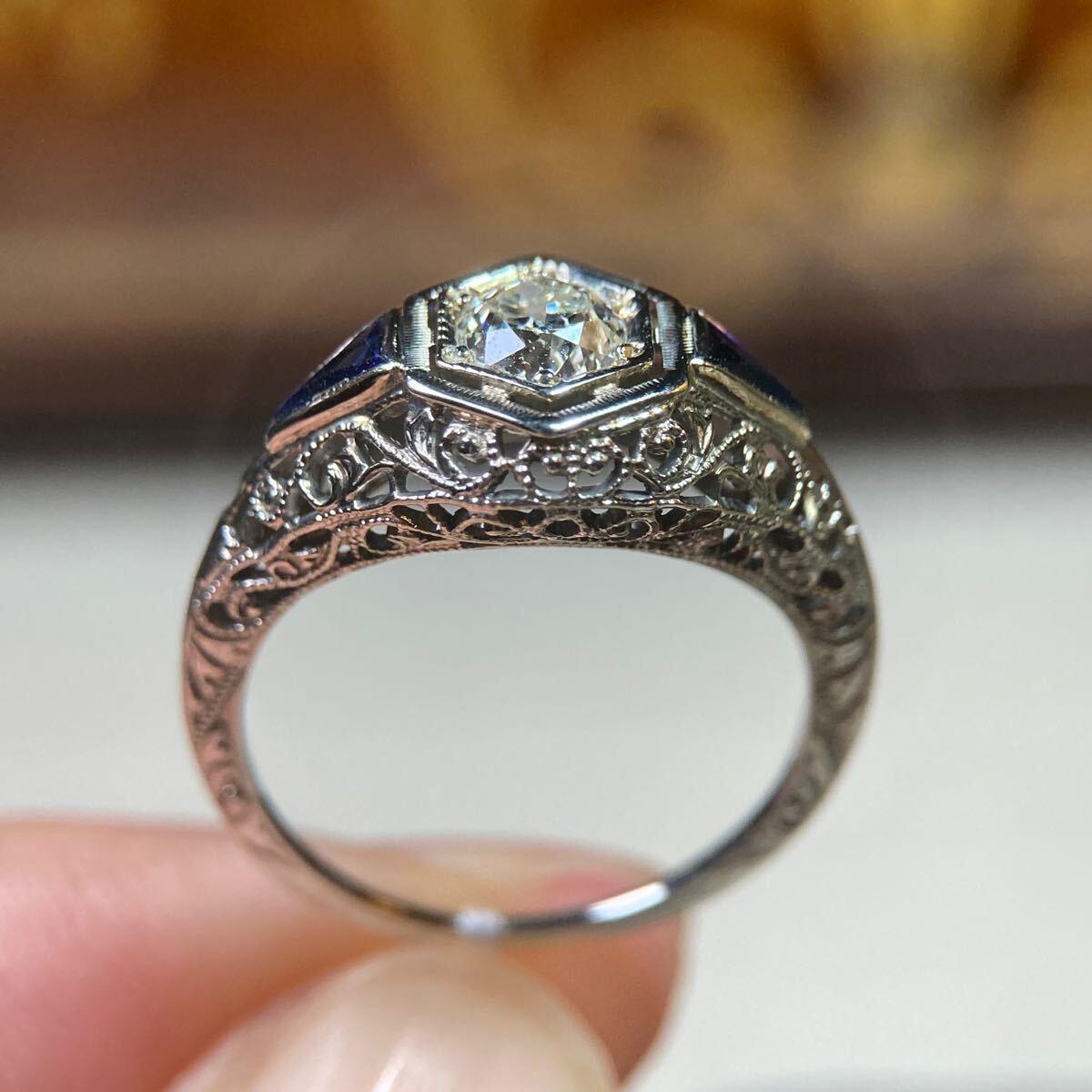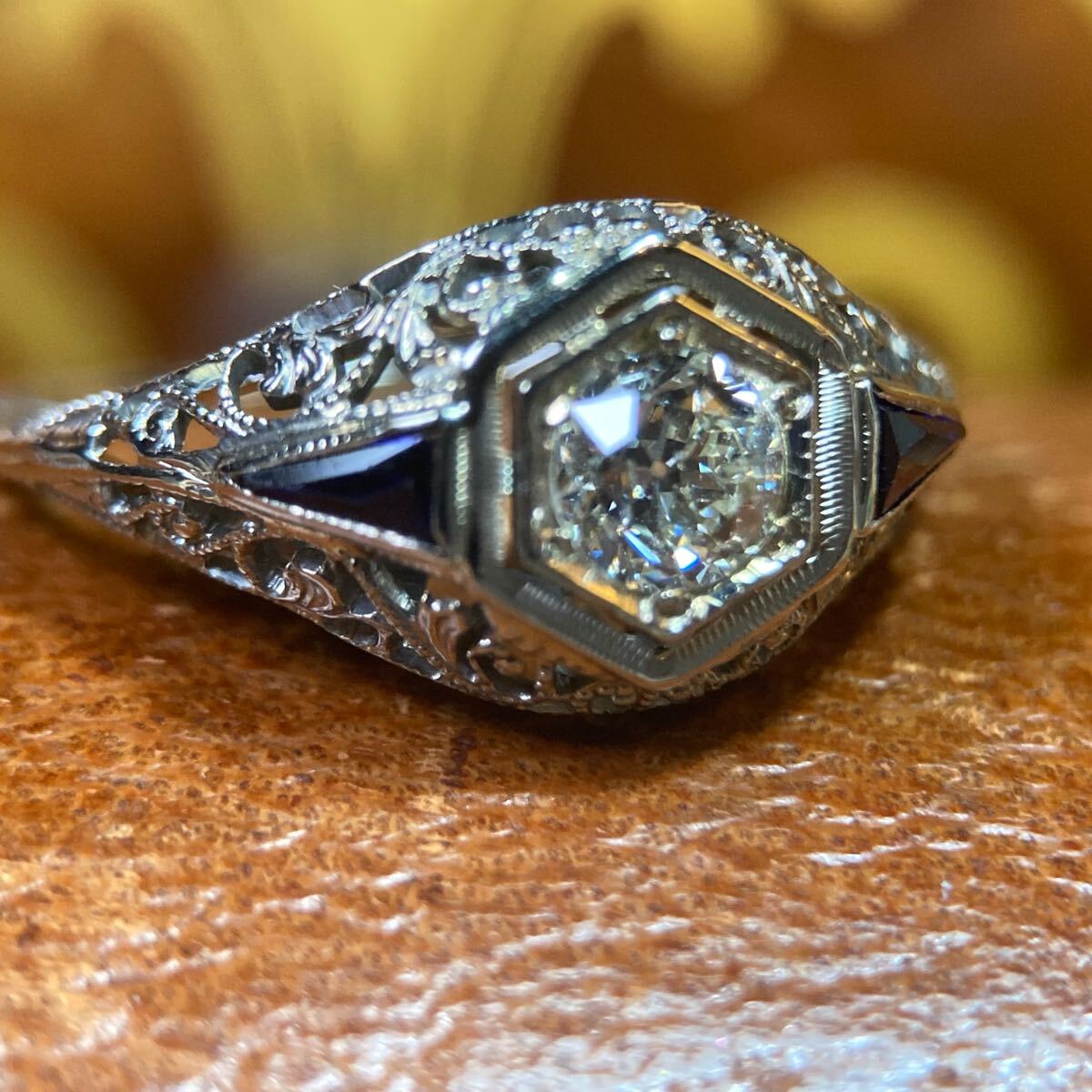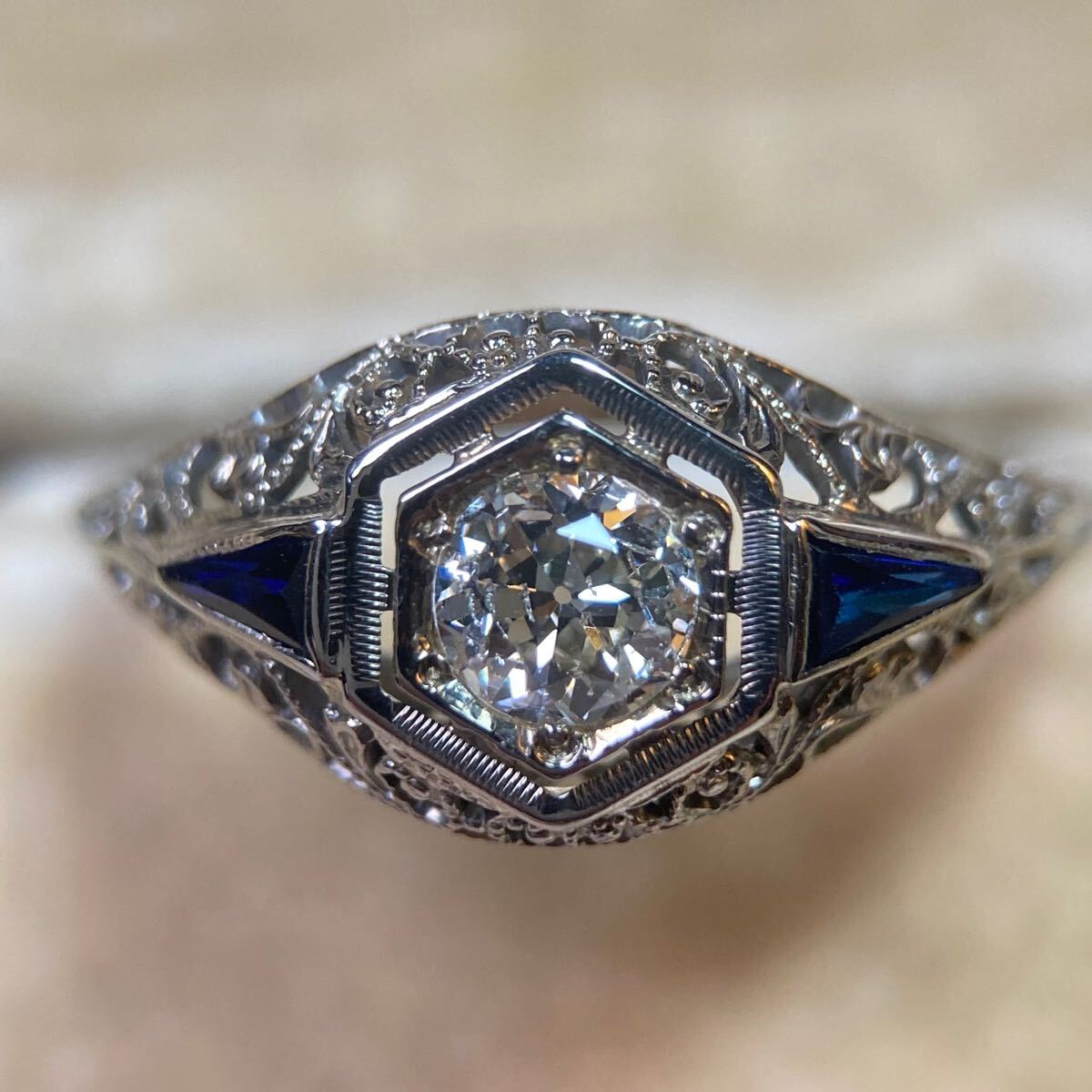 アールデコ時代の美意識が息づく、1920年代に作られた繊細なリングです。