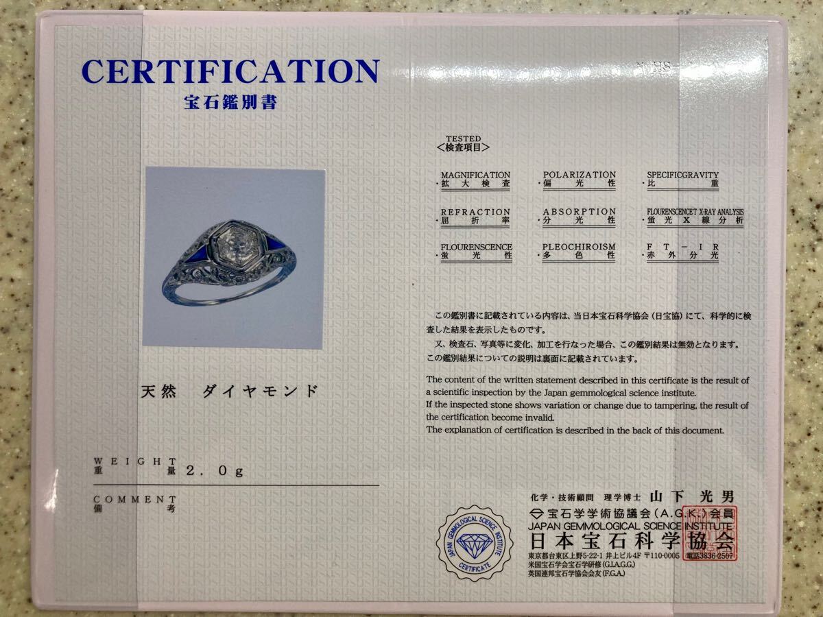 彫刻、オールドヨーロピアンカットダイヤモンド、そしてサファイアガラス。この3つの要素が絶妙なバランスで融合し、唯一無二の存在感を放つリングです。
