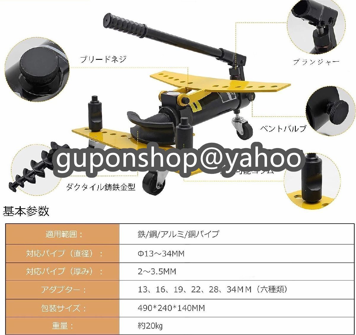 パイプベンダー パイプ曲げ機 油圧式 φ13-34mm 10t 90° 鉄/鋼/アルミ/銅パイプ