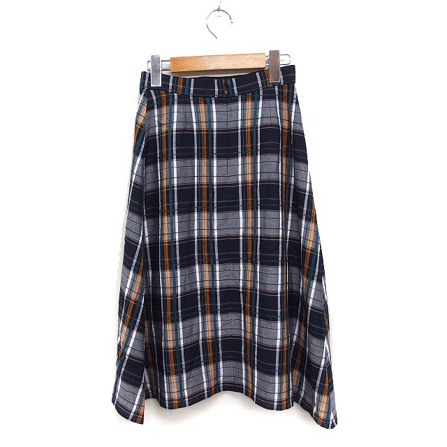 アンタイトル UNTITLED チェック フレアスカート ミディ丈 ウール混 0 グレー 灰 ネイビー 紺 /FT16 レディース