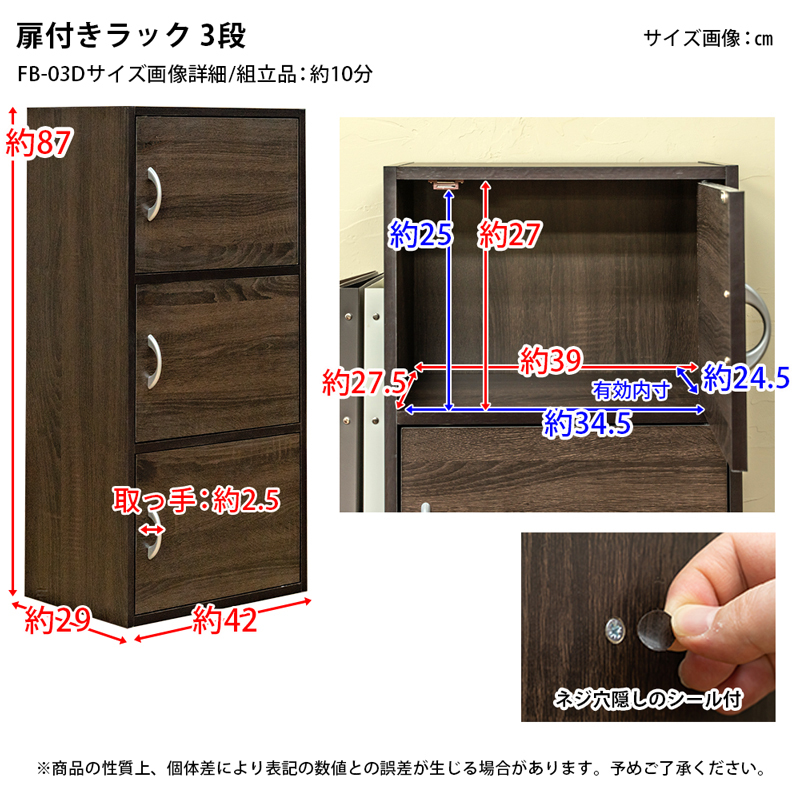 | 材質 | 本体:15mm厚パーティクルボード両面化粧し貼り 取っ手:ABS樹脂 |