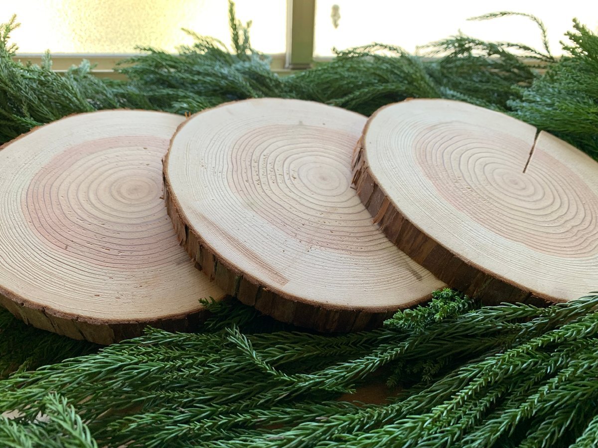 ・チェーンソーでの輪切りで厚さは誤差があります。