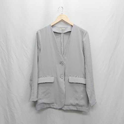 ◇ Θ mystic ミスティック ノーカラー 長袖 ジャケット サイズF ライトグレー レディース E