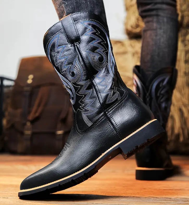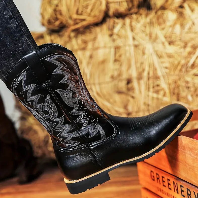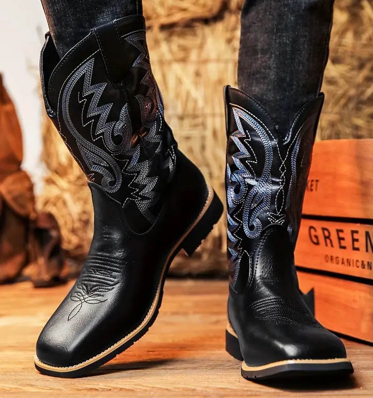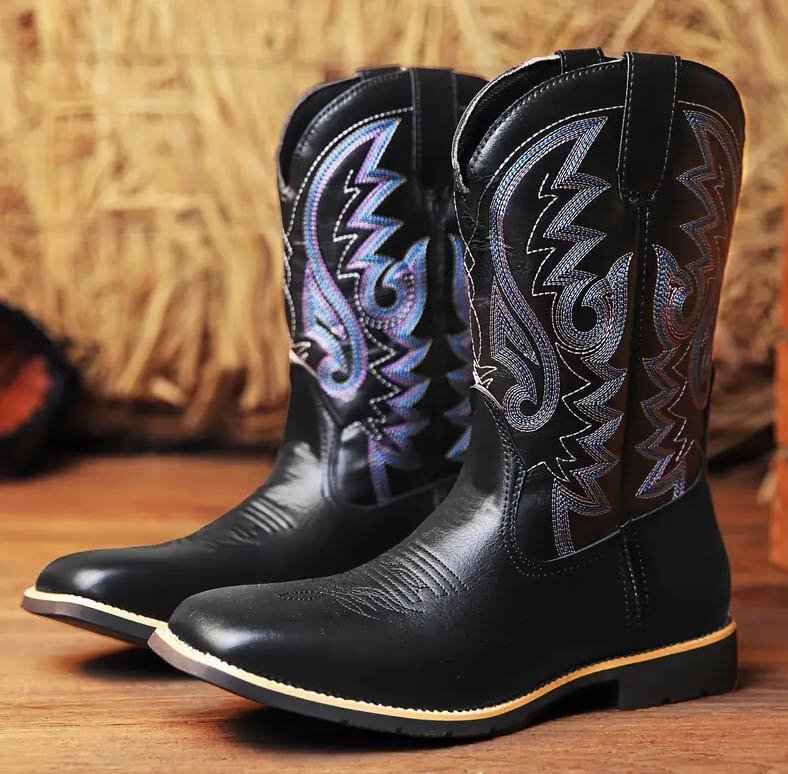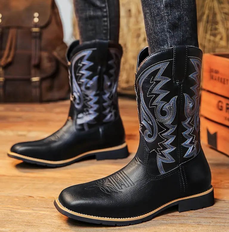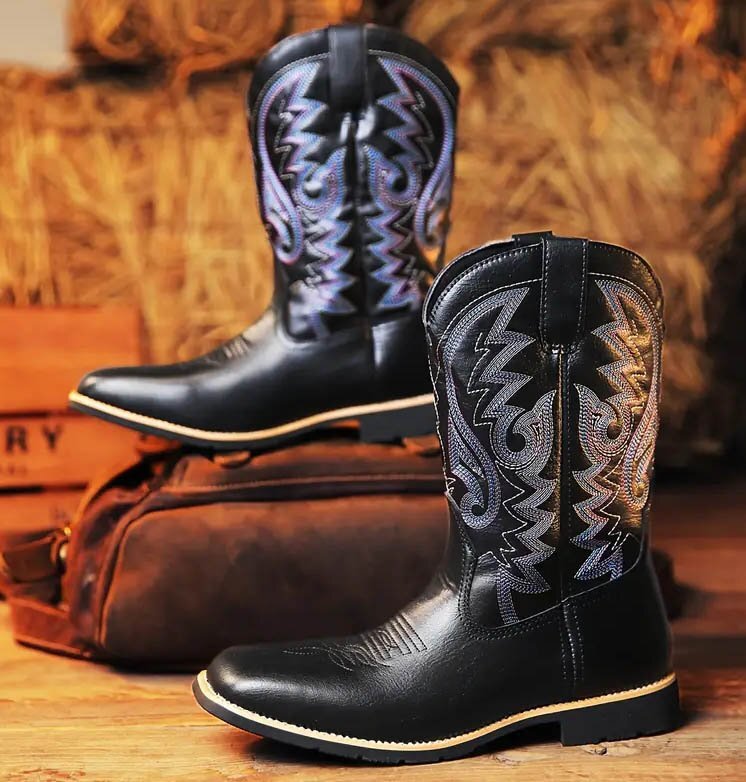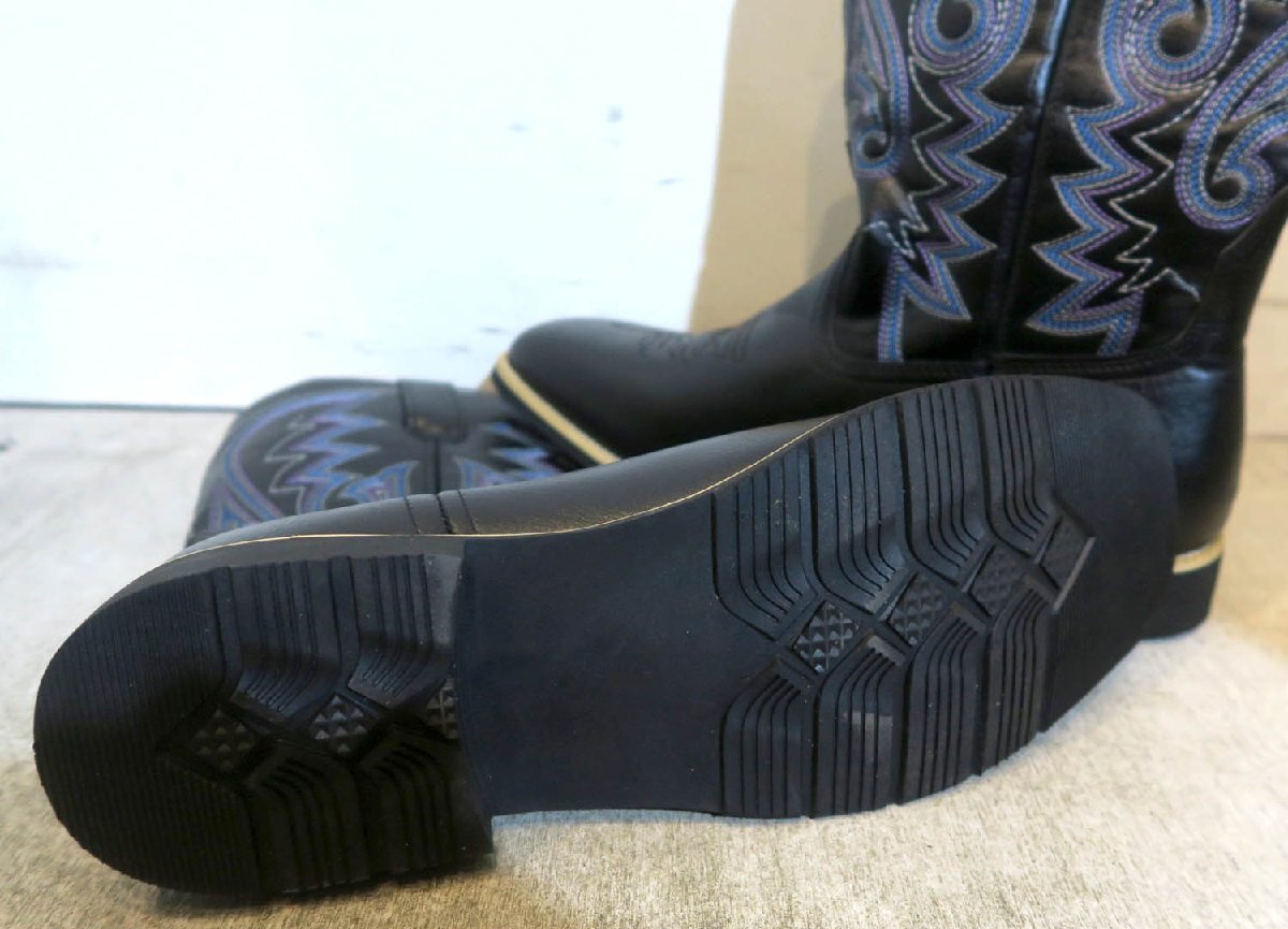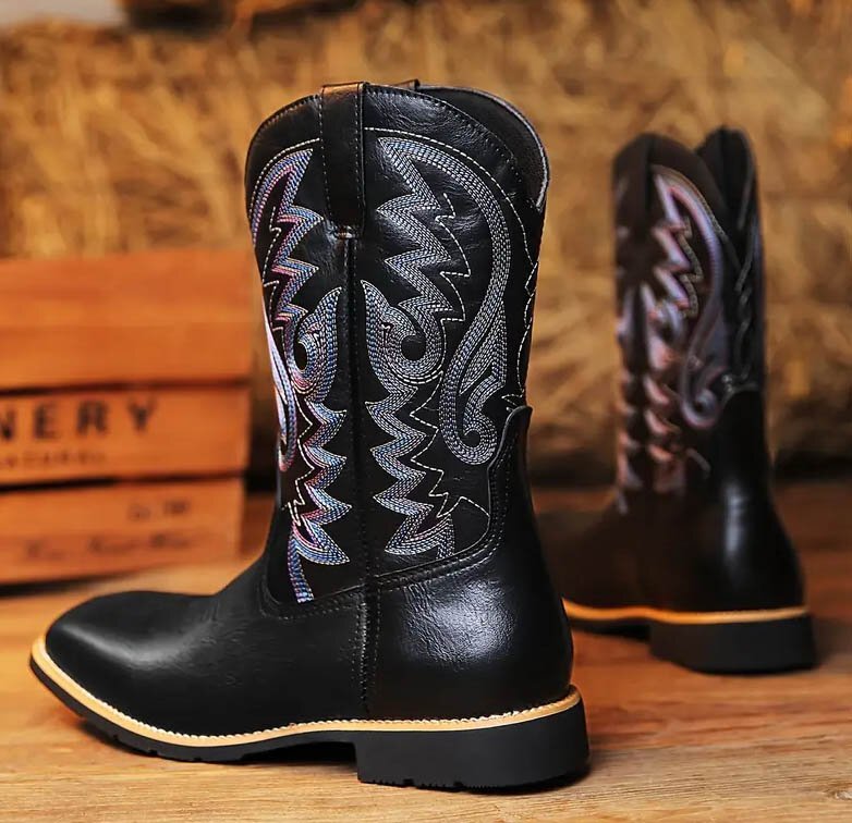 新品 26.5cm ウエスタンブーツ 刺繍 フェイクレザー 黒 4078 2657 ブラック カウボーイ ロカビリー アメリカン インディアン ハイカット 靴